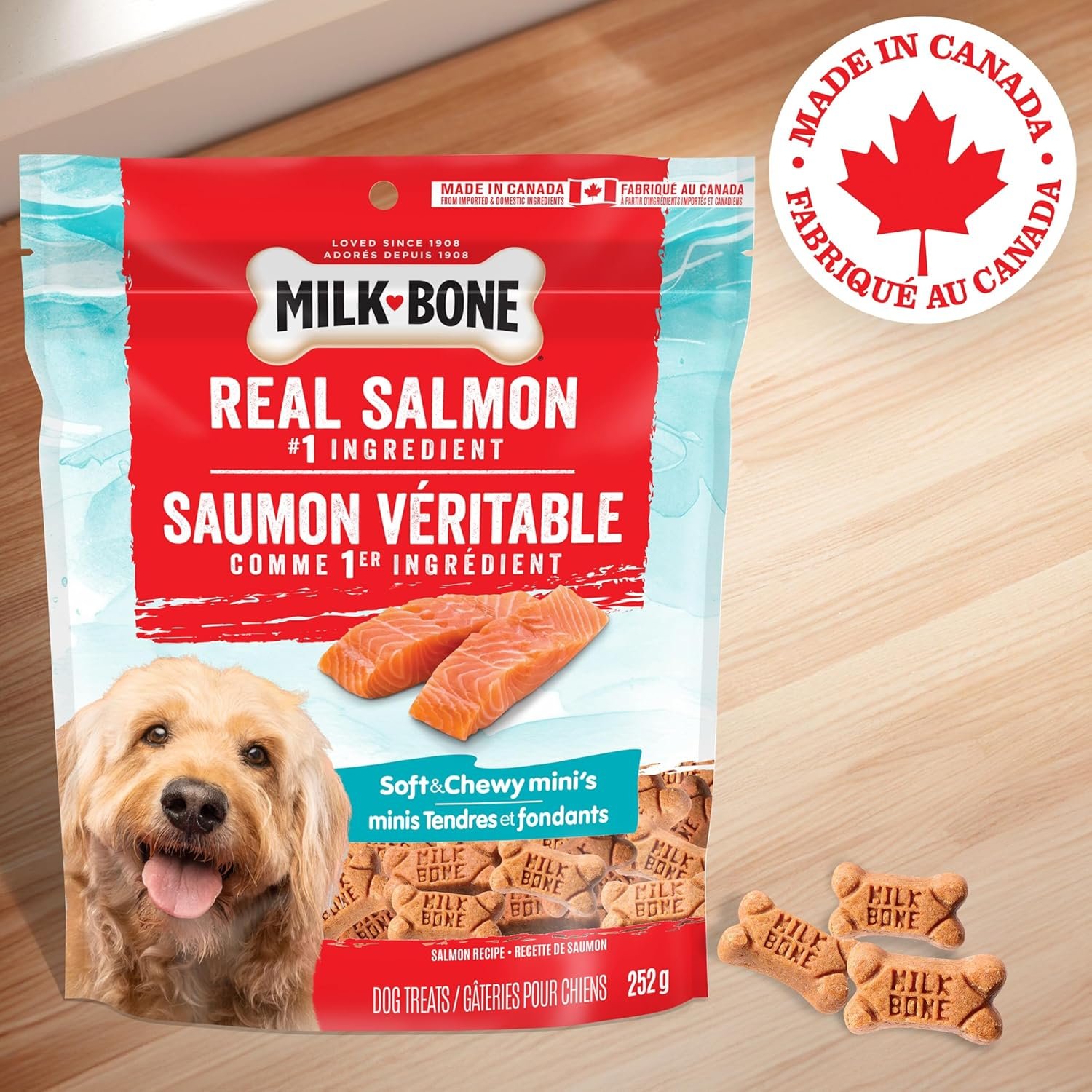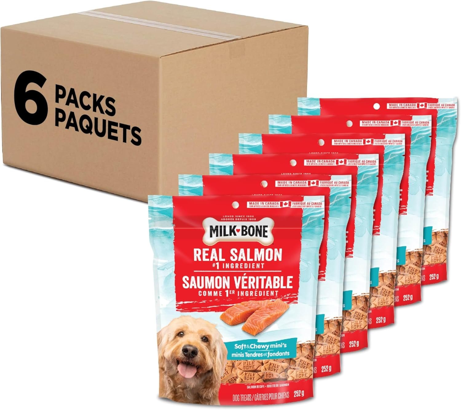 Milk-Bone Soft & Chewy Dog Treats, Tender Oven Baked Snacks Made with Tasty Wholesome Ingredients, Mini’s, Real Meat Salmon Recipe 252 g (Pack of 6)