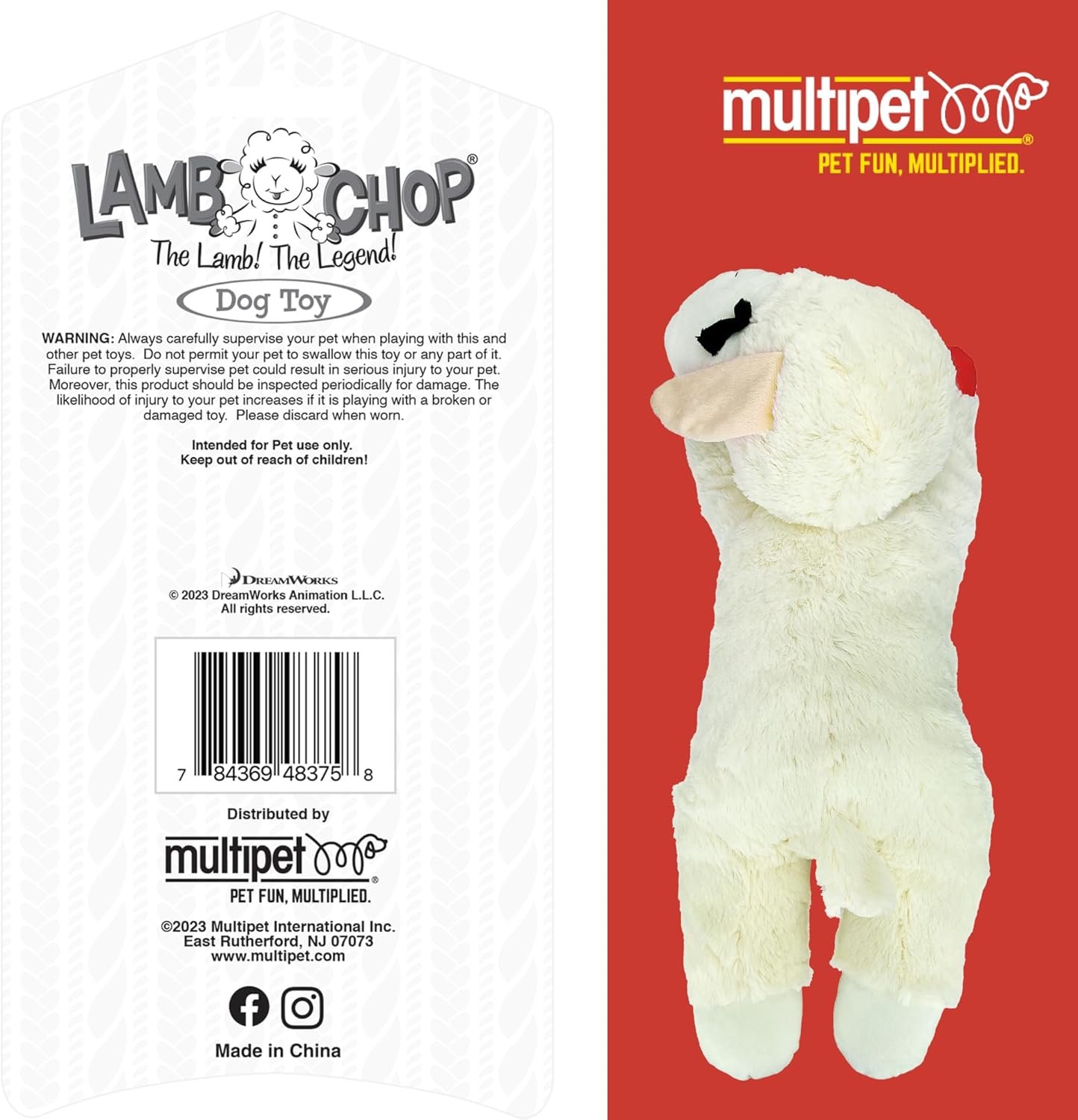 MULTIPET Officially Licensed Lamb Chop Plush Dog Toy, Jumbo, 24-Inch, White (48388)
