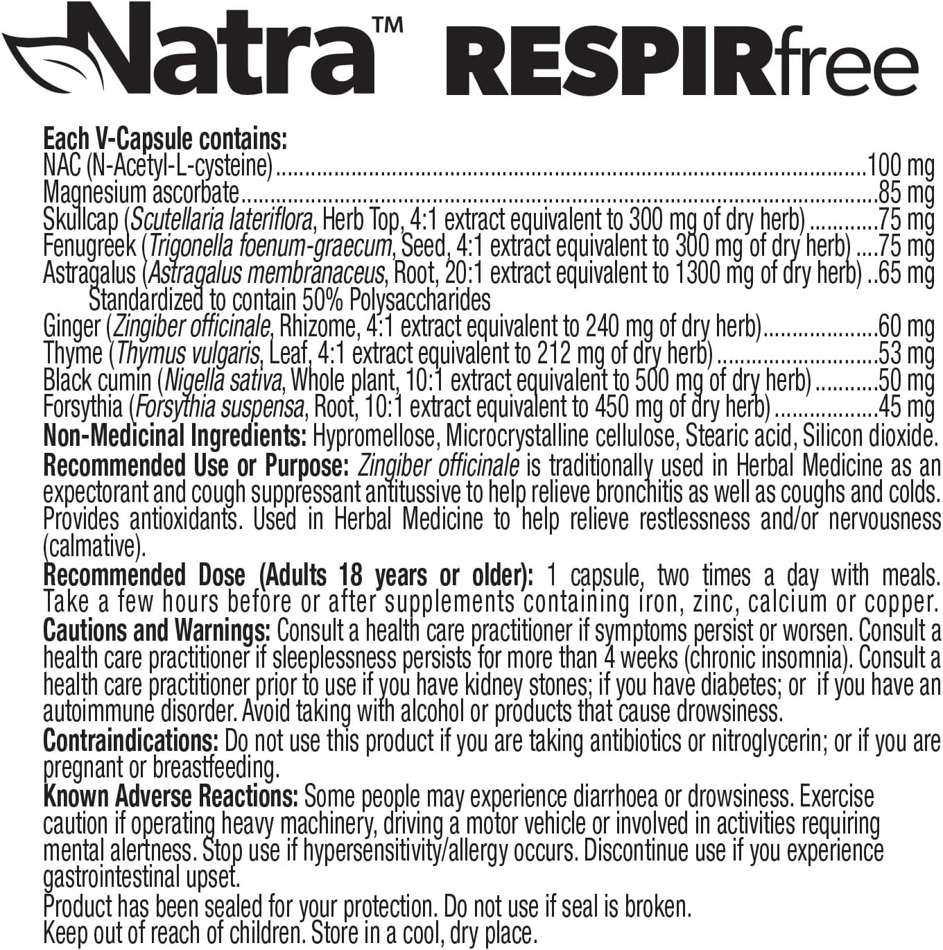 Each capsule of RESPIRfree contains: