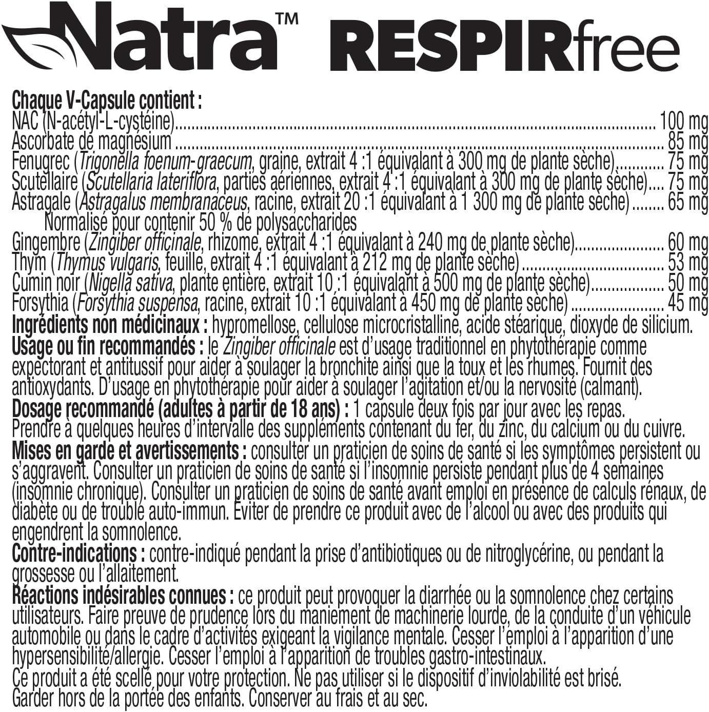 Natra RESPIRfree Supplements FactsNatra RESPIRfree Supplements Facts