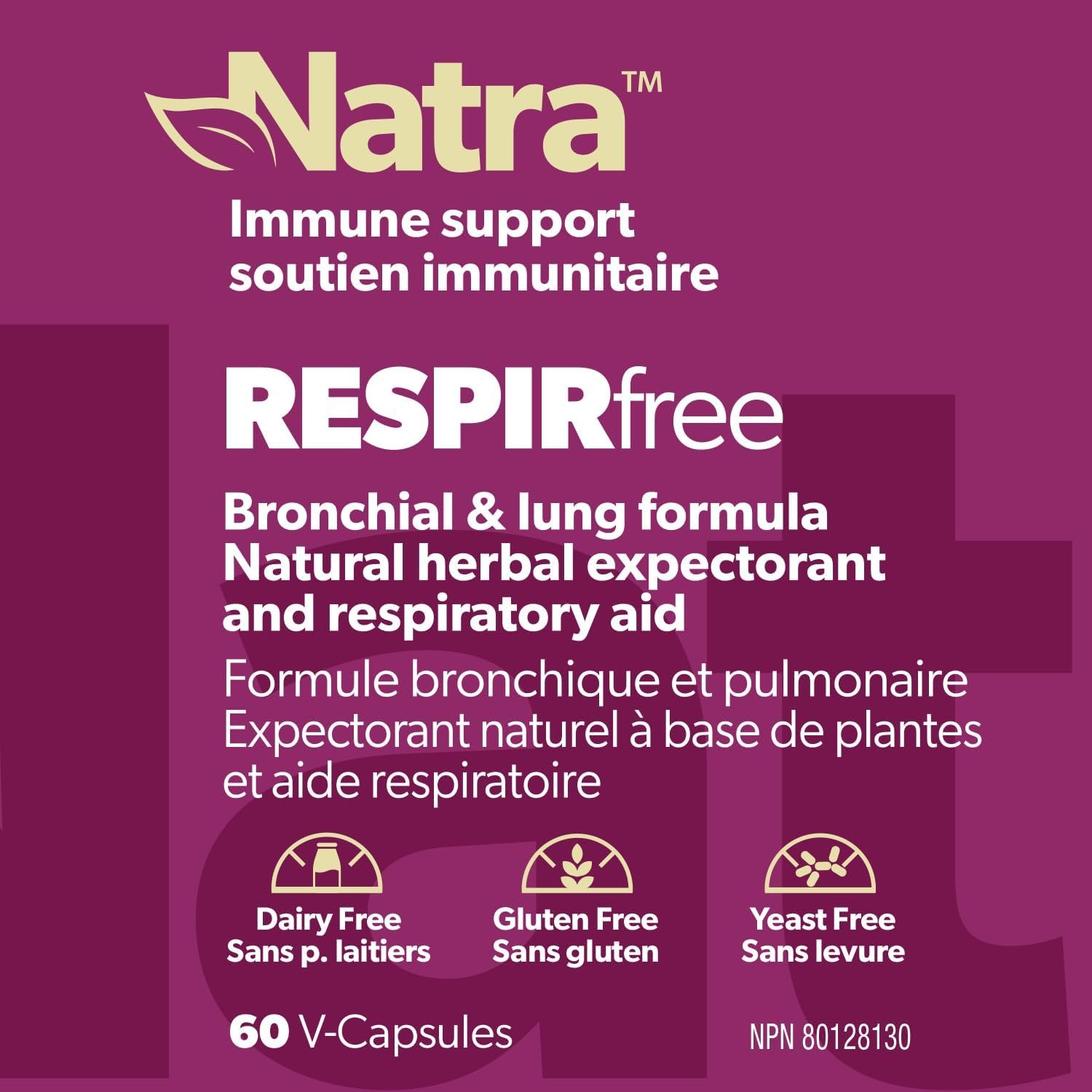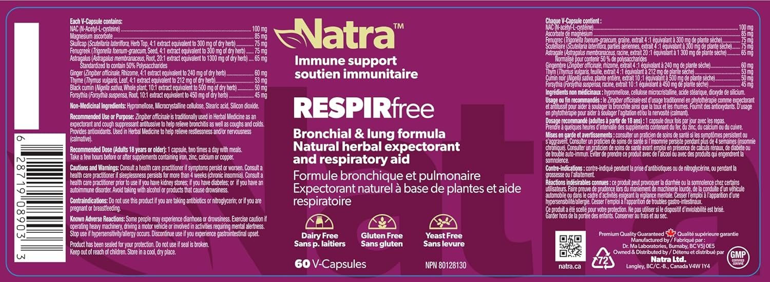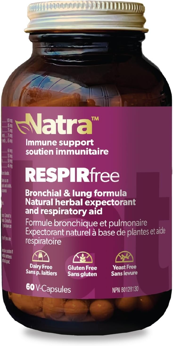 Natural Respiratory Support Supplement – Natra RESPIRfree is licensed natural supplement designed to support lung and bronchial health. Traditionally used as natural expectorant and cough relief aid, RESPIRfree helps ease chest congestion and promote clear breathing during seasonal colds and flu.