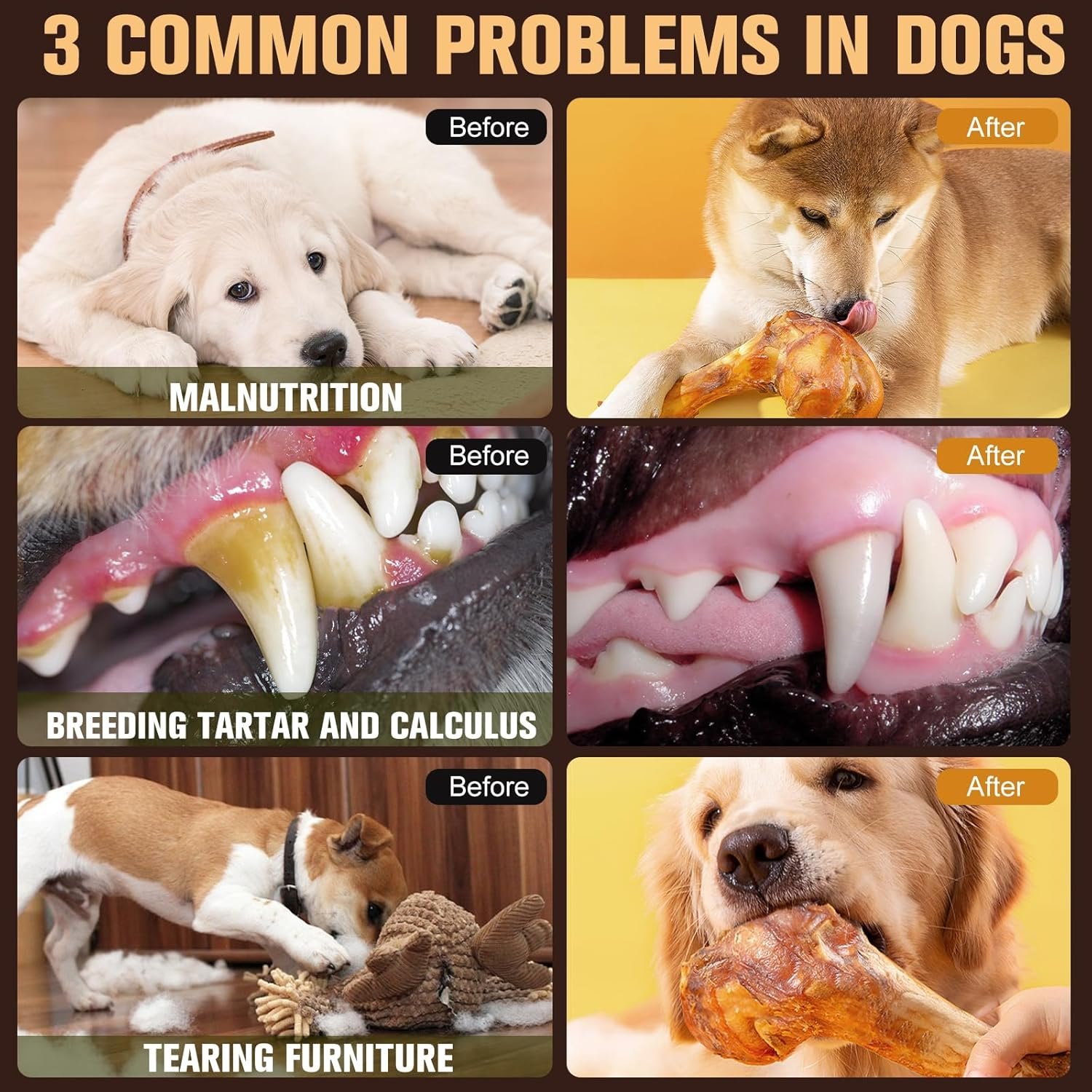 ❗【Safety First】:To ensure your dog’s safety: Supervise during chewing; remove any small fragments that break off to avoid choking; discard the chew when it’s reduced to a 2″ piece (small enough to swallow). Our fully digestible formula means accidental ingestion of tiny crumbs won’t cause digestive issues.