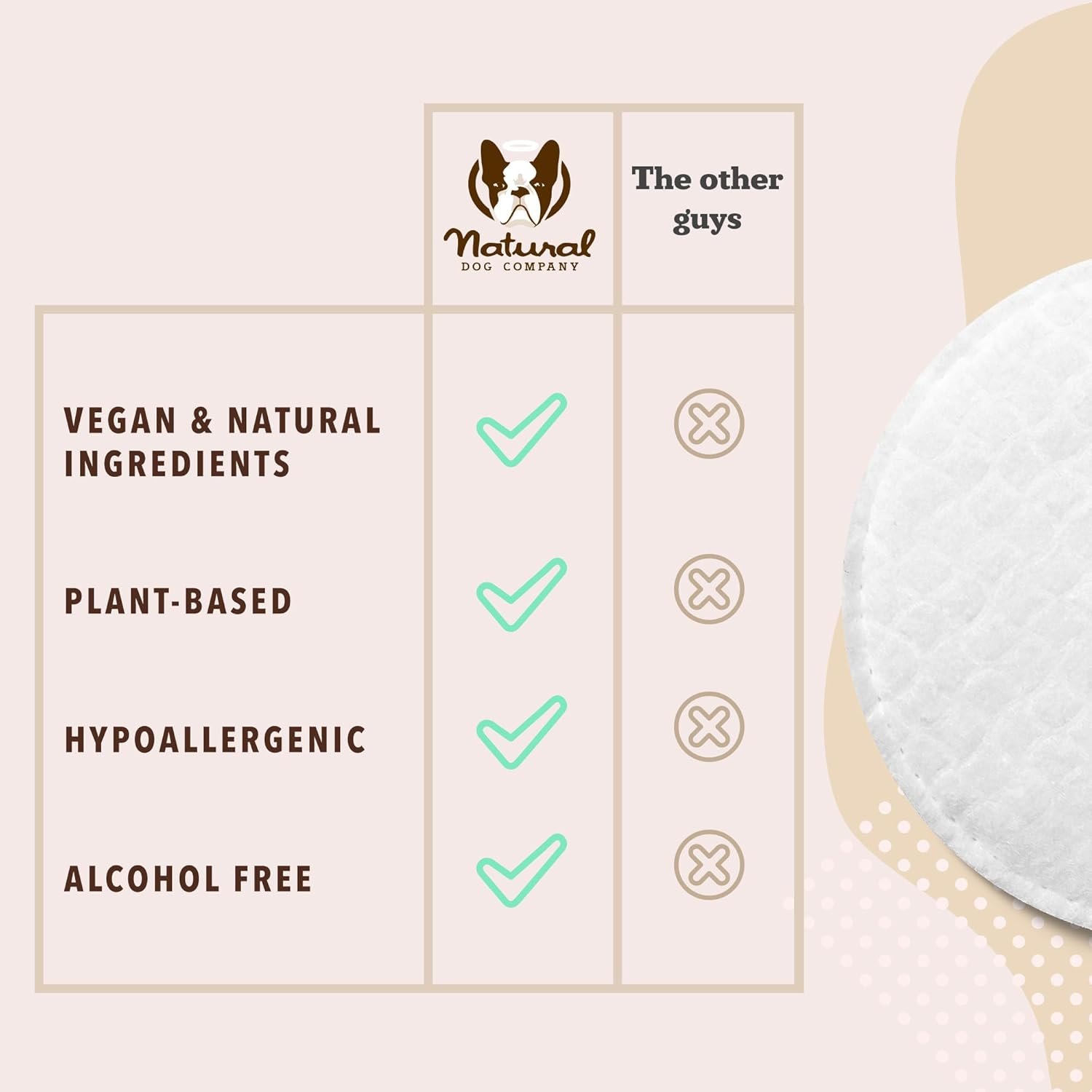 FULL BODY GROOMING WIPES: Includes (1) package of Natural Dog Company All Natural Grooming Wipes that can be used to clean dirt or grime off Paws, Skin, Wrinkles, Snouts, Butts, Faces, Ears – anywhere that needs a good wipe down between baths.