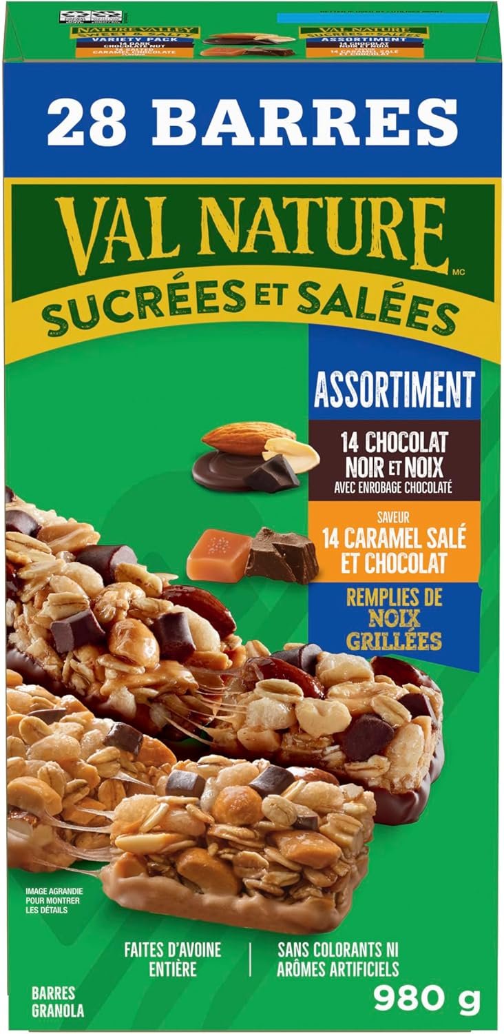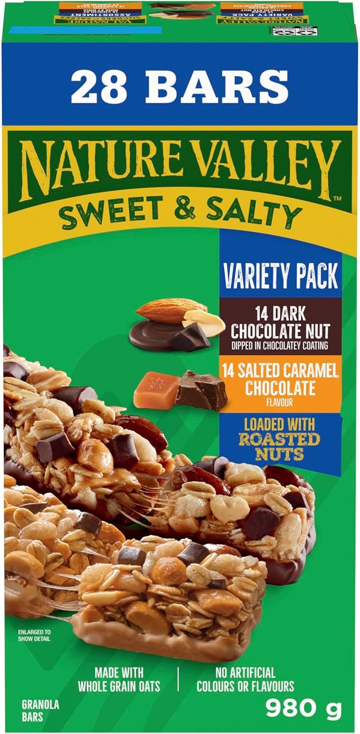 NATURE VALLEY – VALUE PACK – Dark Chocolate Nut and Salted Caramel Chocolate Chewy Nut Sweet and Salty Granola Bars Variety Pack, Pack of 28 Bars, 980 grams, Snack Bars, Made with Whole Grains