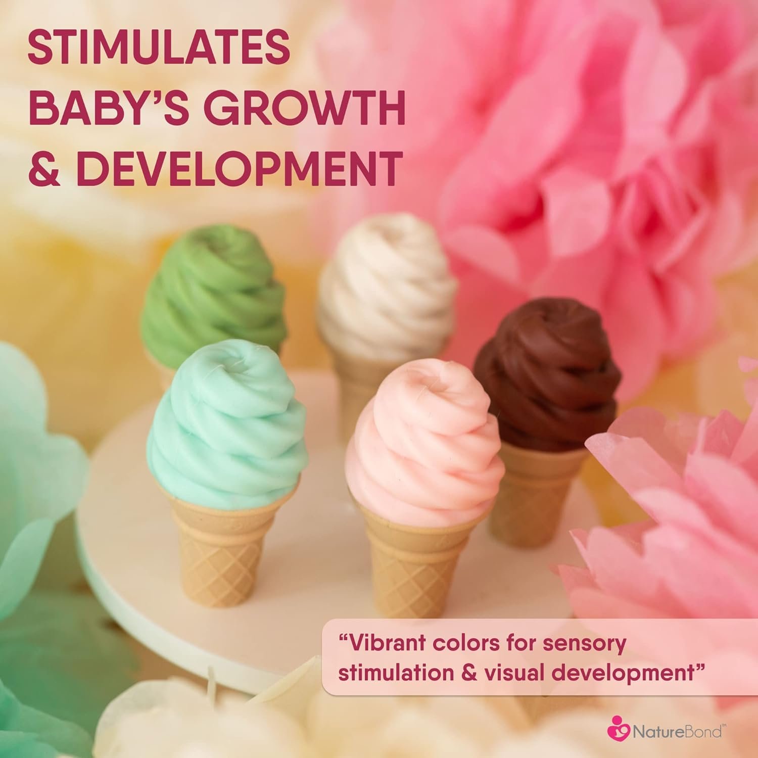 Designed in Gorgeous and Appealing Colors to stimulate cognitive development.Available in 5 Colors – Strawberry, Chocolate, Vanilla, Matcha, and Peppermint.