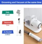 【Pet Grooming Vacuum with 5 Professional Tools】This pet grooming clippers come with 5 proven tools: Grooming brush and De-shade brush to help prevent damaging the topcoat whilst promoting a soft, smooth, healthier skin & coat for your pet; Electric clipper provides excellent cutting performance; Nozzle head and Cleaning brush can be used for collecting pet hair falling on the carpet, sofa and floor.