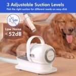 【Low Noise Design】: 3 Adjustable Suction Levels to choose. Pet clippers for dogs with low noise design to help the pet feel at ease and no longer afraid of haircut. We suggest grooming your pet with our brush before trimming pet hair, treating your pet with little snacks to avoid making your pet nervous because of vacuuming noise, which conclusively makes the grooming experience even more enjoyable.