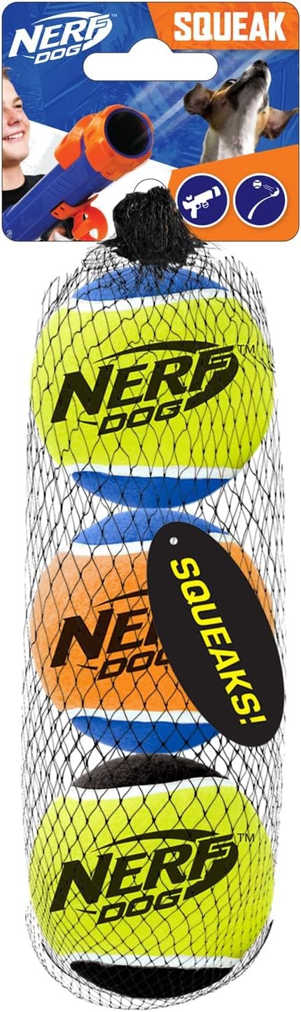 The NERF DOG 3-Pack of 2.5″ Squeak Tennis Balls will entertain your dog for hours on end! The durable felt body stands up to extended chewing and makes an interactive squeaking sound that dogs love. Great for toss and fetch, or solo play sessions.
