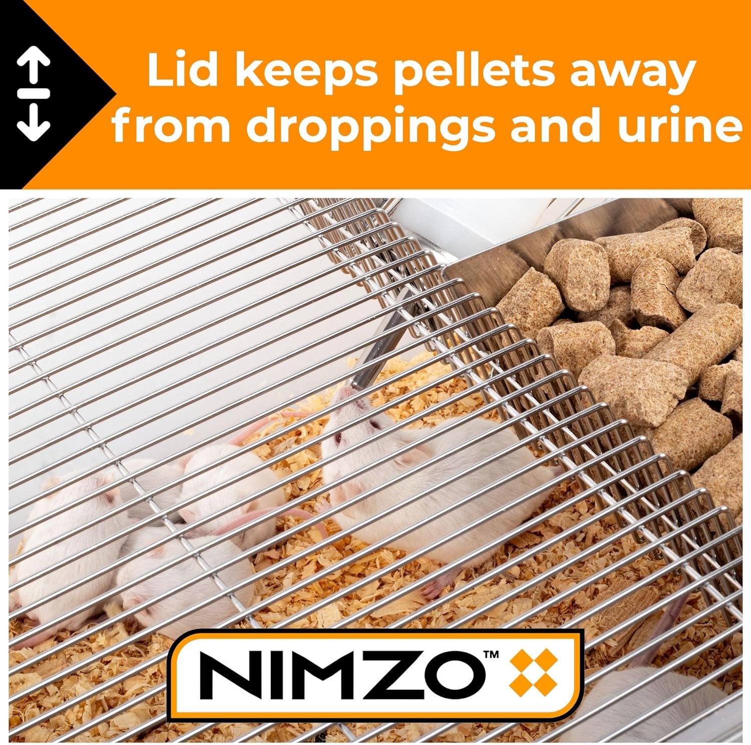 Wire Lid Design – The latchable lab-style stainless steel wire top keeps food blocks or food pellets away from droppings and urine. The lid can secure one water bottle and has a foldable partition to separate the food pellets. It has a narrow wire spacing of 1/4″ (5 mm) to prevent rodents from escaping