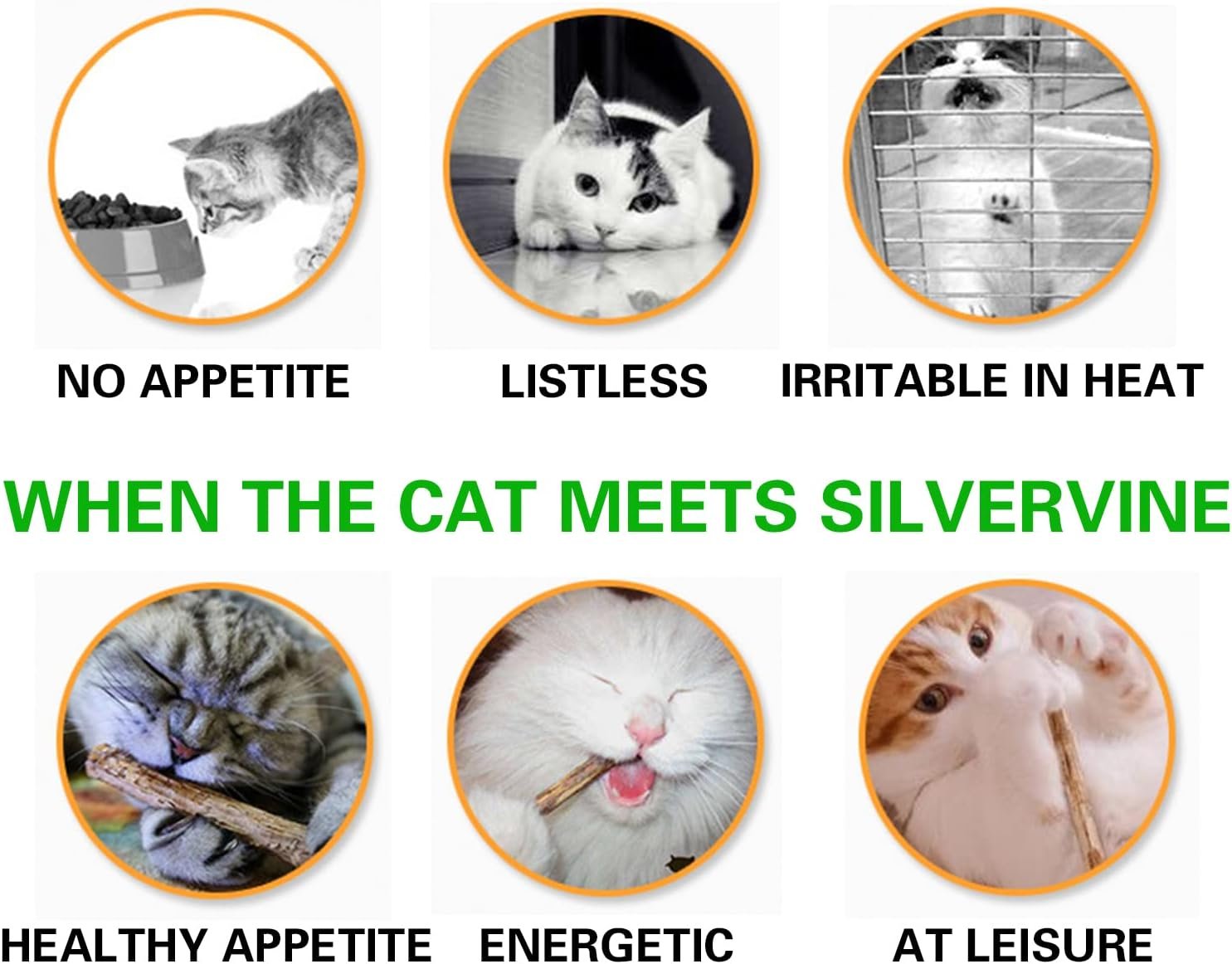 【NATURAL SAFE】: 100% natural silvervine sticks (aka Matatabi chewing sticks). Picked at the freshest, organic and unprocessed, it retains its rich wood aroma. Silvervine for cats has no additives or preservatives and is safe for your pet’s health.