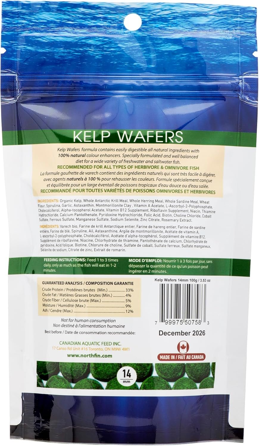 NorthFin Kelp Wafers Premium Fish Food 14mm, 100g
