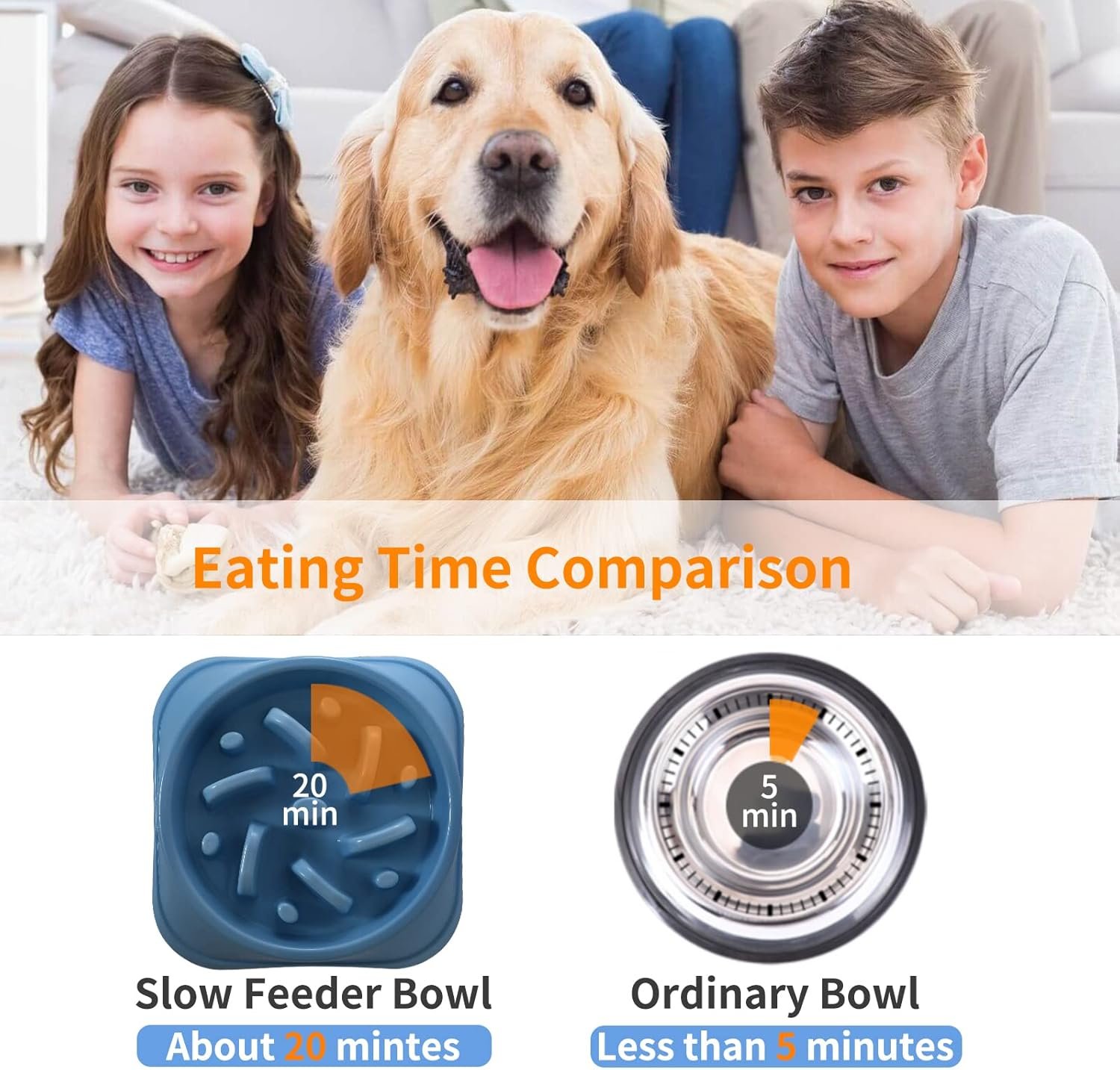 The scientific pattern design can effectively slow down the dog’s eating speed and delay the eating time. After the experiment, the eating time can be extended from 5 minutes to 20 minutes for the same amount of food. It’s 4 times longer!