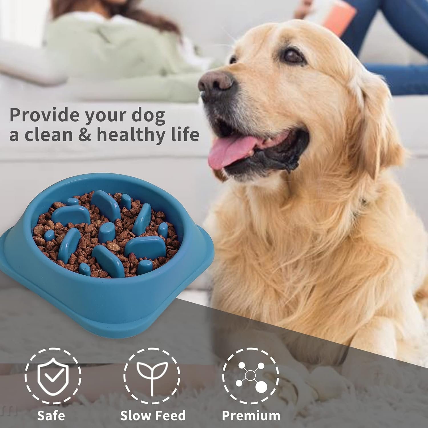 ✔【Reasonable food intake】: Pet Slow Feeder Bowl Diameter: 7.5 inches. Bottom Diameter: 9 inches. Height: 2.16 inches. It can hold 3 cups of food. Suitable for medium/large sized dogs.