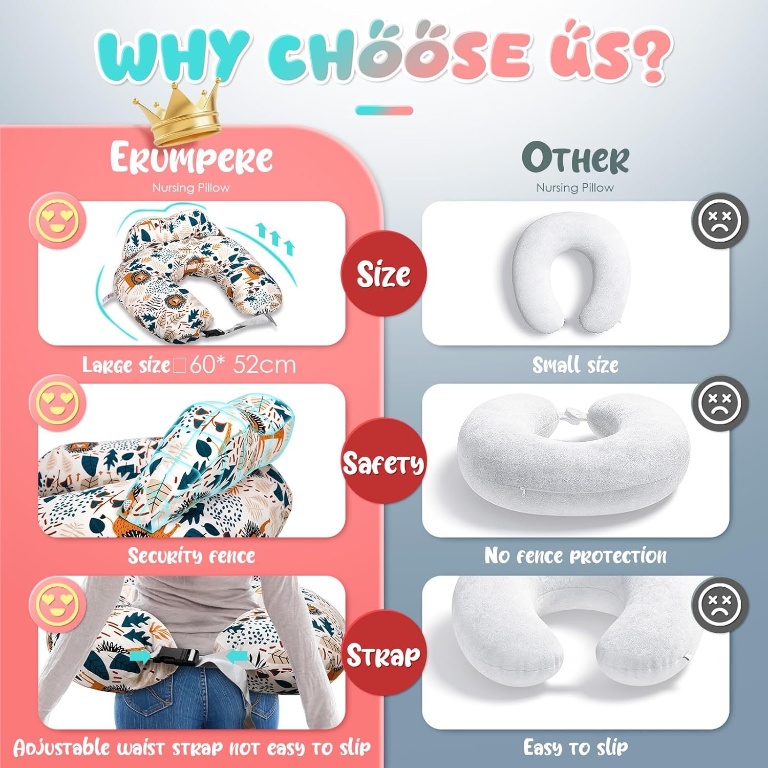 【Nursing Pillow for Breastfeeding】 An ideal baby shower gift and registry essential. Its 3-sided safety fence prevents rolling during feeding for added security. Helps you and your baby bond while establishing successful nursing.