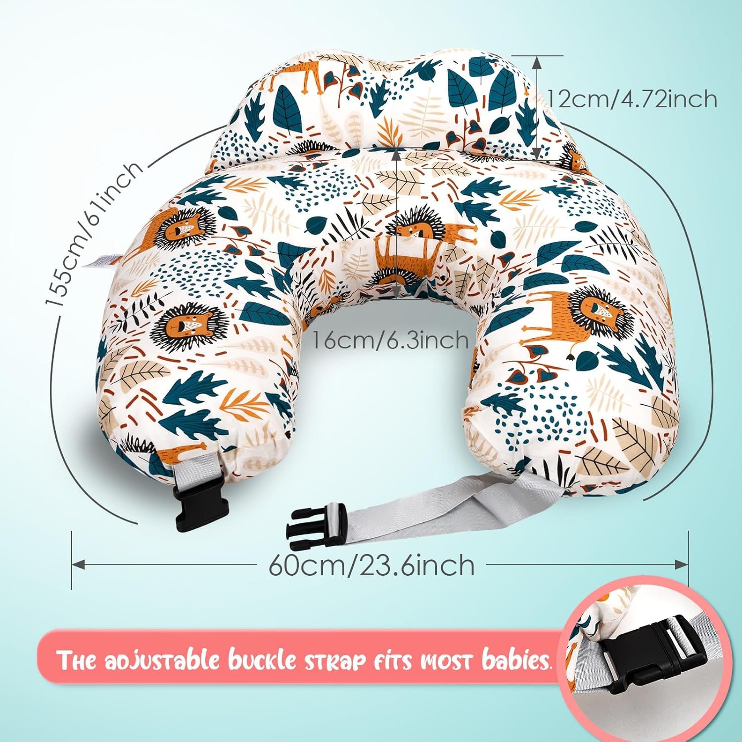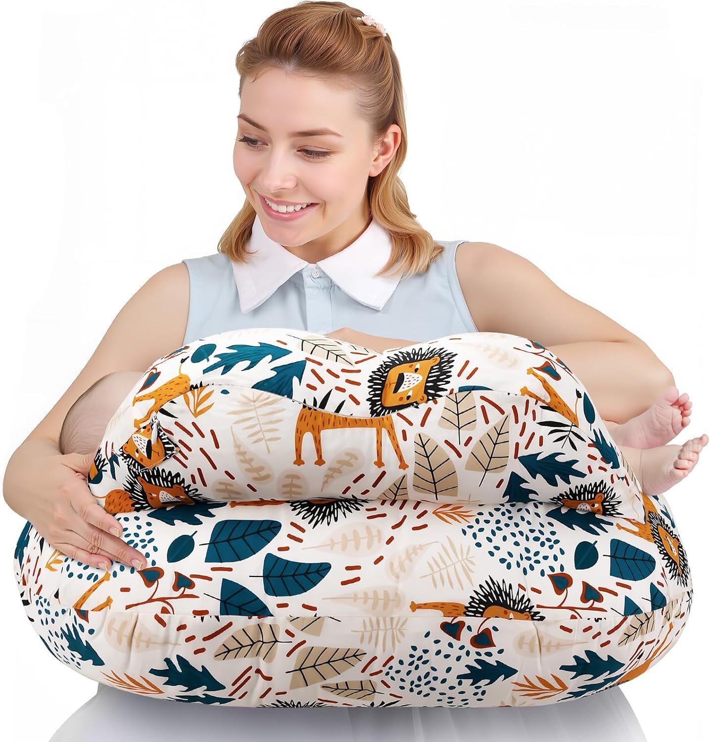 Nursing Pillow for Breastfeeding – Ergonomic Comfort & Support Baby Pillow for Bottle Feeding and Breastfeeding, Easier and Healthier Nursing, Firm Fiber Fill, with Removable Cover (Lion)