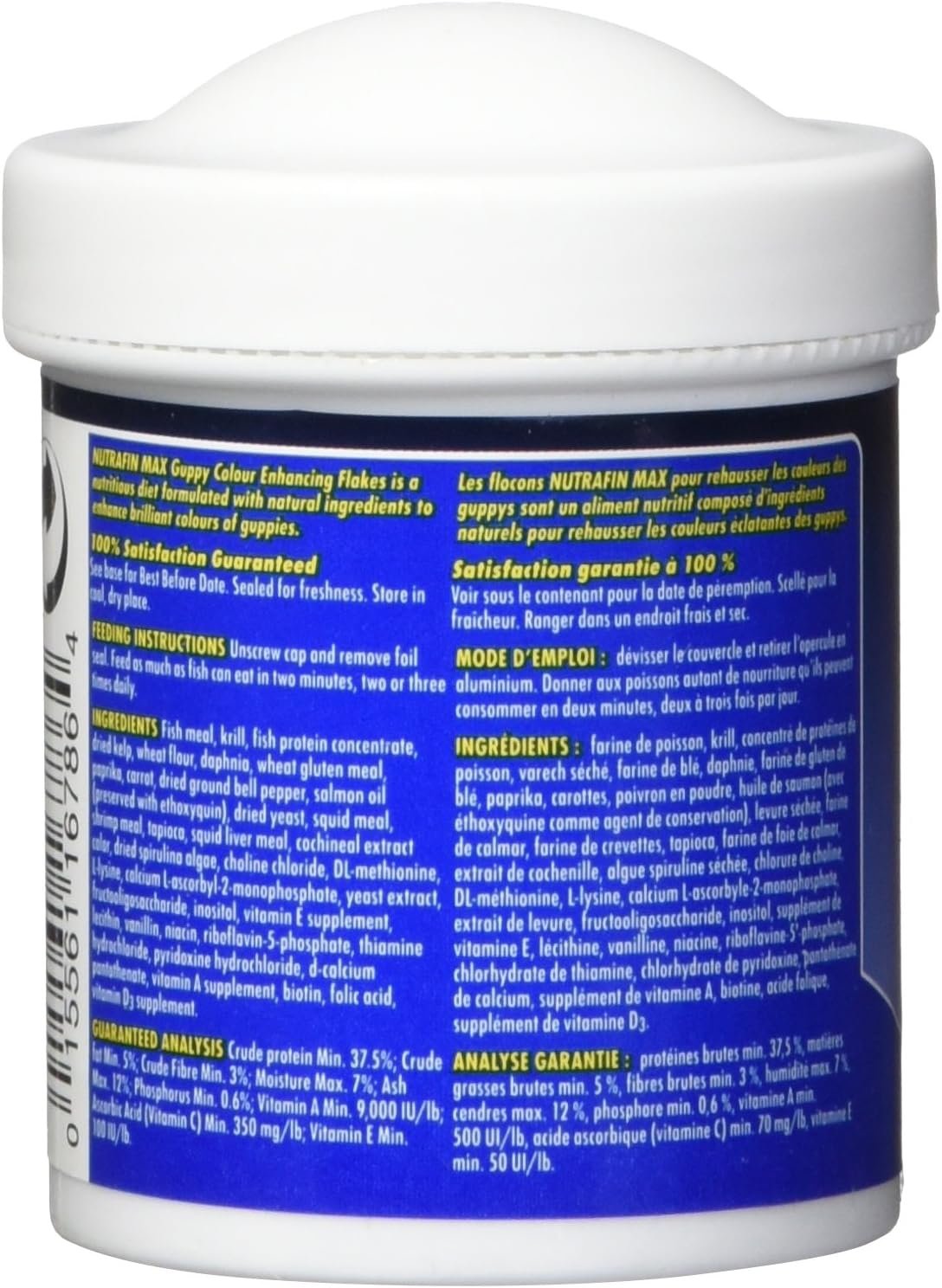 Nutrafin Max Guppy Color Enhancing Flake Food is formulated to support growth and vibrant colors for all guppies. The food’s quality natural ingredients plus added vitamins and minerals for guppy health, produces brilliant colors even in Adult Fancy Guppies. The advanced formulation of Nutrafin Max Guppy Color Enhancing Flakes additionally supports vibrant colors in other livebearers including Swords and Patties. The Color-enhancing flakes contain quality all natural ingredients including kelp, paprika, carrot, cochineal, bell pepper, and spirulina to support rich blues, greens, oranges and reds. Nutrafin Max Guppy Color Enhancing Flakes also includes salmon oil, a source of highly unsaturated fatty acids, for a nutritional boost. Added vitamins and minerals ensure proper nutrition and advanced yeast extract conditions and supports a healthy digestive system. Nutrafin Max Guppy Color Enhancing Flake Food is a low-waste formula and contains no artificial colors.