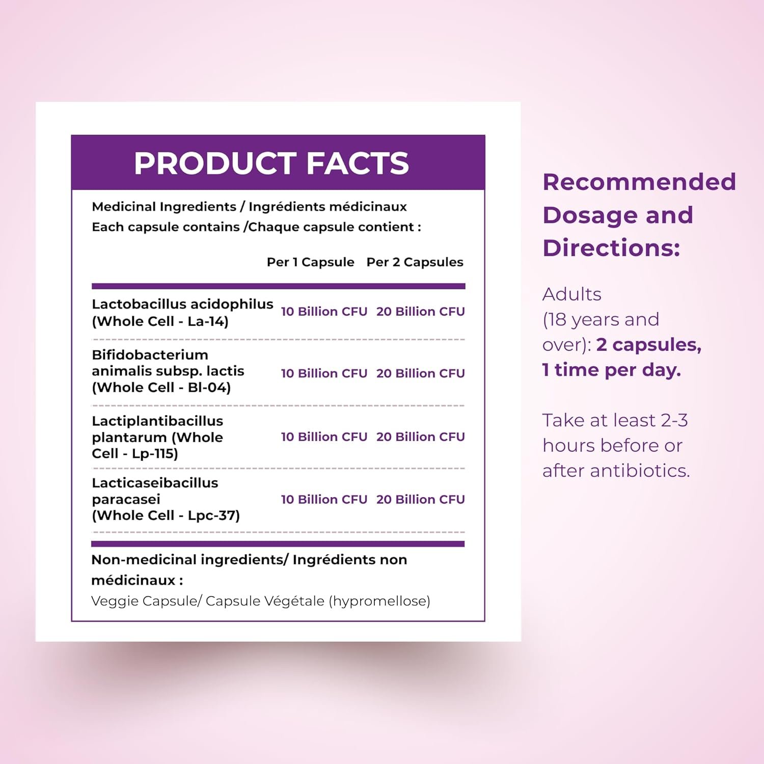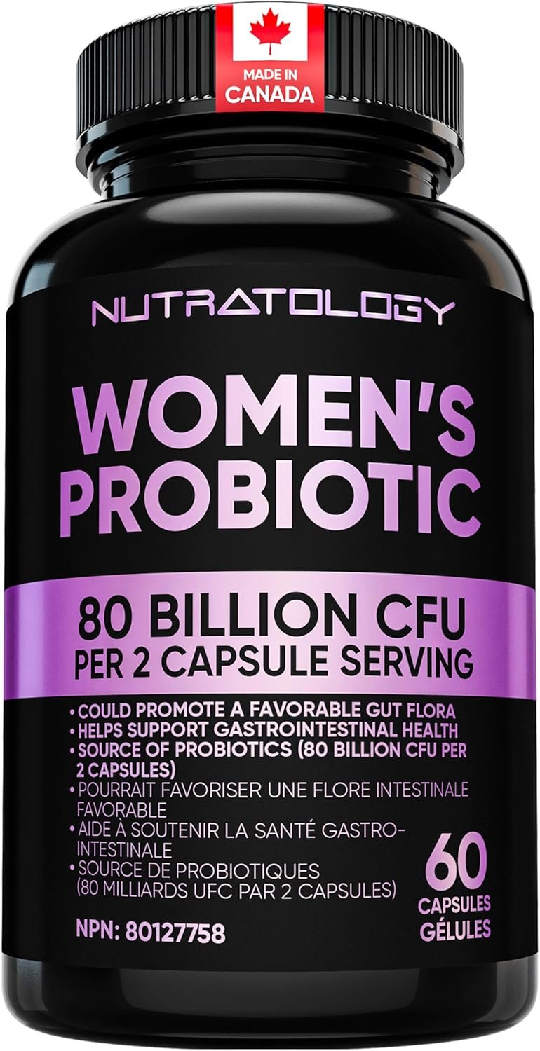 Nutratology Probiotics for Women | Canadian-Made | 40 Billion CFUs Per Capsule | 80 Billion CFUs Per Serving – Bloating Relief & Digestion – 4 Strains of Women’s Probiotic for Gut Health – 60 Capsules