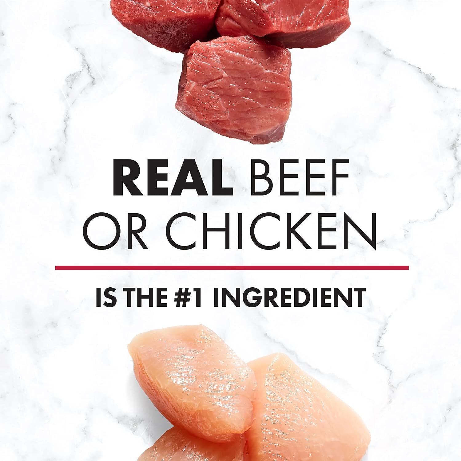 Real beef is the first ingredient in the Beef Stew recipe, Real chicken is the first ingredient in the Tender Chicken recipe