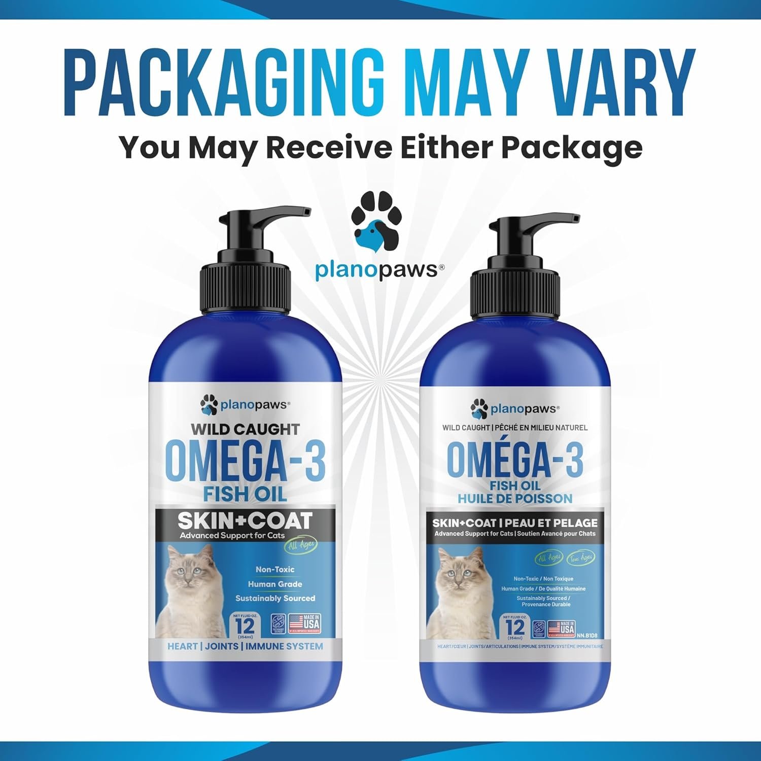 Sustainably Sourced – Our all-natural omega-3 fish oil for cats provides naturally occurring DHA and EPA from responsibly sourced fish, supporting everyday skin and coat wellness as part of a balanced diet.