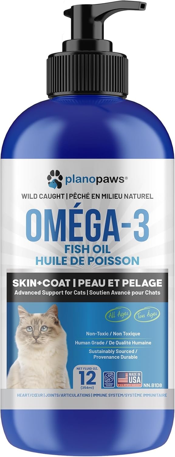 Omega 3 Fish Oil for Cats – Liquid Cat Fish Oil Supplement with EPA & DHA – Kitten Vitamins & Cat Health Supplies – Supports Skin & Coat – for All Breeds & Ages