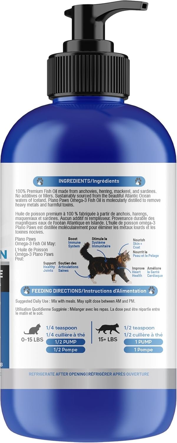 Omega 3 Fish Oil for Cats – Liquid Fish Oil with EPA & DHA – Supports Skin & Coat Condition – Easy to Mix for Cats & Kittens
