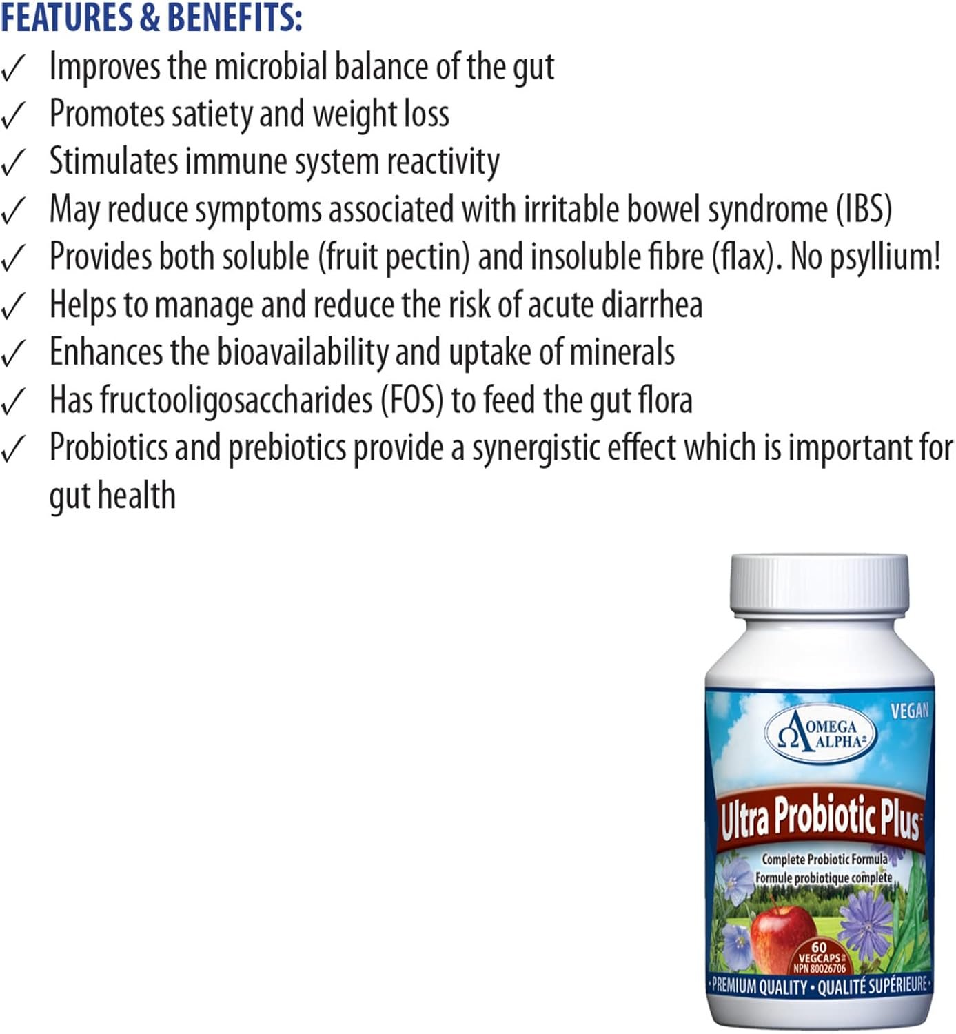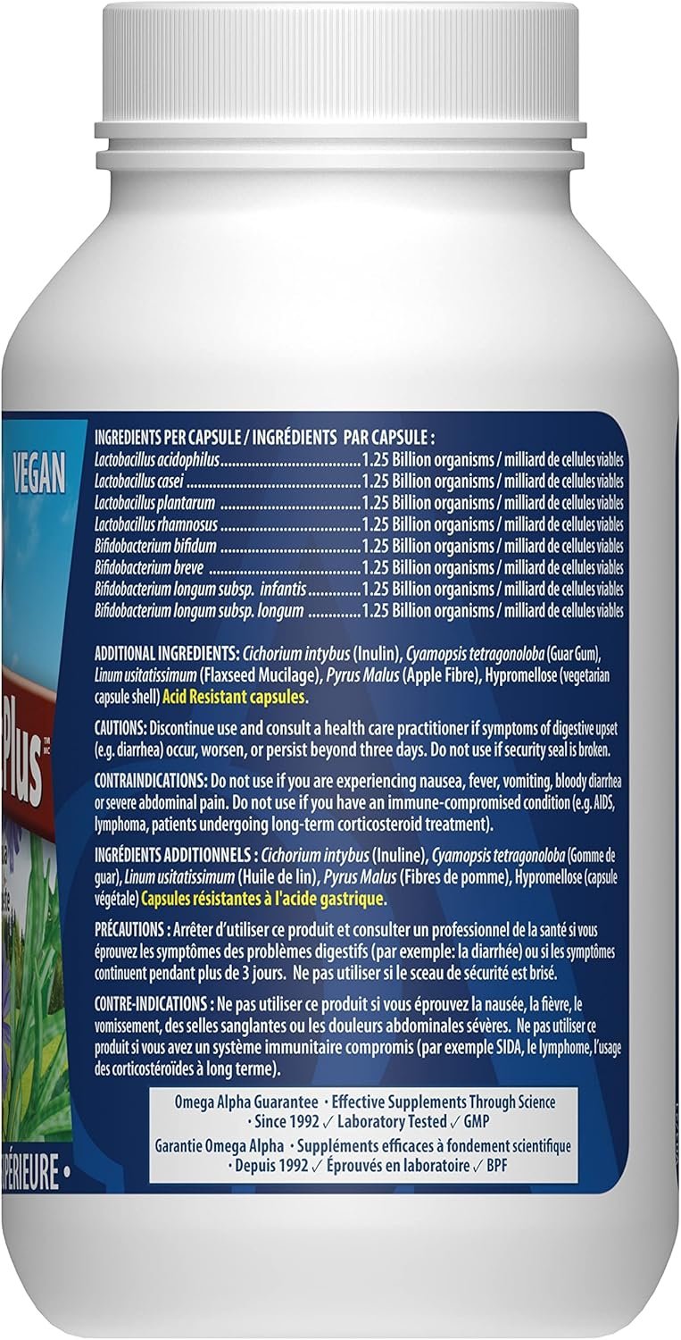 Omega Alpha Ultra Probiotics Plus, Digestive Supplement for Gut Health & Flora Balance, 8 Strains Enzymes, 10 Billion, 60 Veg Capsules, 60 Day Supply