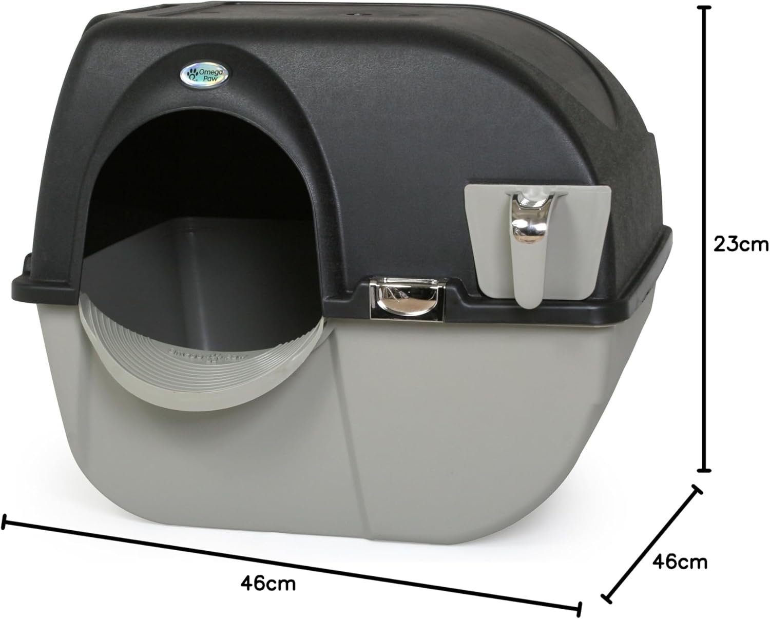 Omega Paw Self Cleaning Litter Box, Elite Roll ‘N Clean Litter Box, Regular Size for Kittens and Cats 10 lbs and Under, Black Colour (EL-RA15-1) with Integrated Litter Step and Chrome Accents