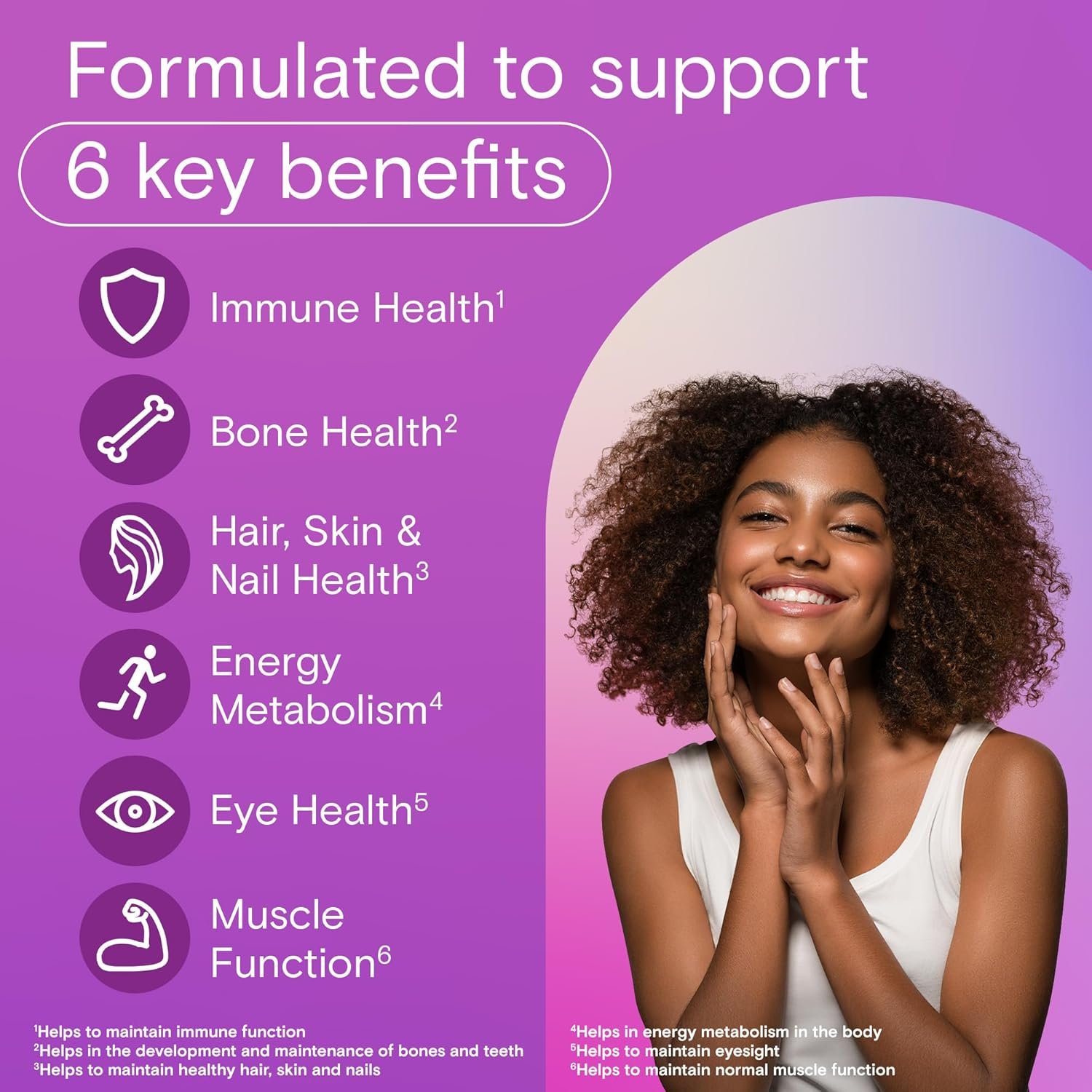 Muscle Function – Helps to maintain muscle function Bone Health – Helps in the development and maintenance of bones and teeth Metabolism – Helps in energy metabolism in the body Antioxidants for Good Health – Source of antioxidants for the maintenance of good health Immune Health – Helps to maintain immune function Healthy Skin and Hair – Maintains healthy hair, skin and nails Eye Health – Helps support eye health Heart Health – Helps to maintain heart muscle function