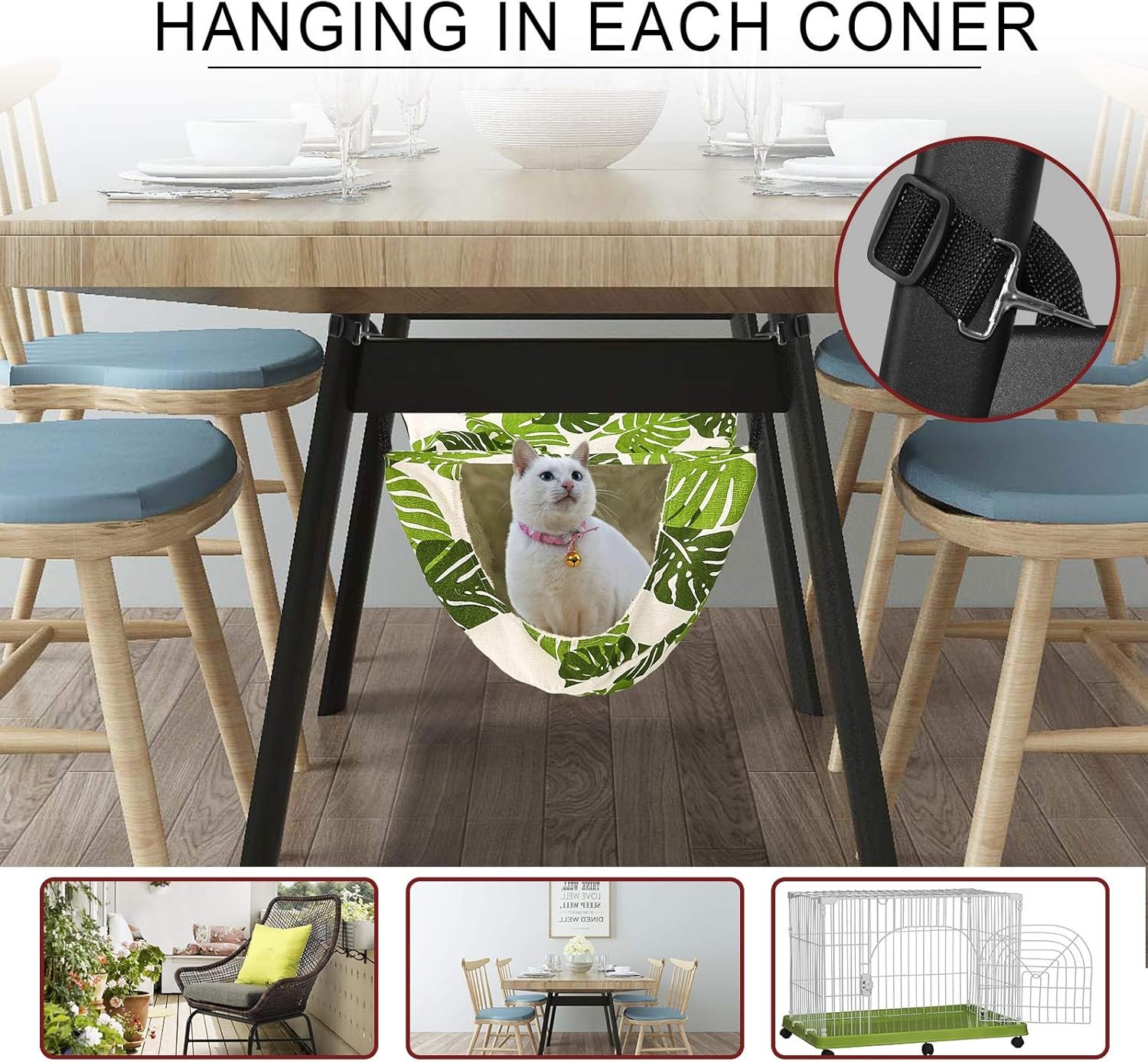 1. High-strength nylon webbing is used around the hammock, and the adjustable belt function allows you to connect to tables, chairs, and cages.