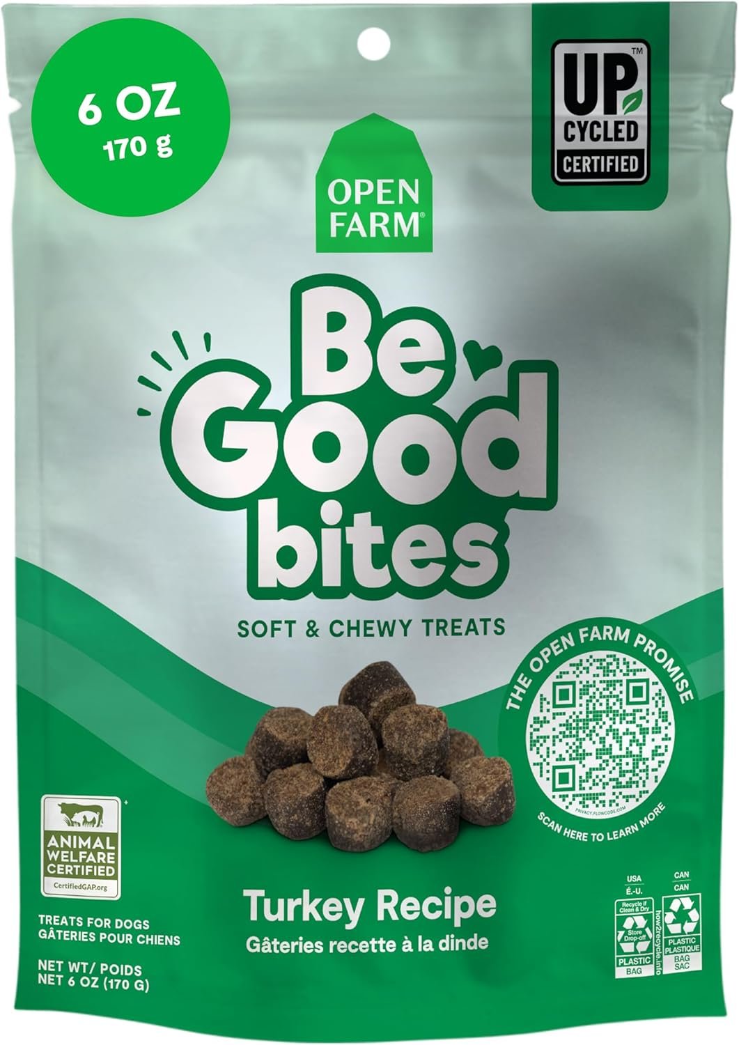 Open Farm, Be Good Bites, Soft Dog Training Treats, Small & Chewy, Made with Ethically & Sustainably Sourced Ingredients, Non-GMO Fruits & Grains, Turkey Recipe, 6oz Pouch
