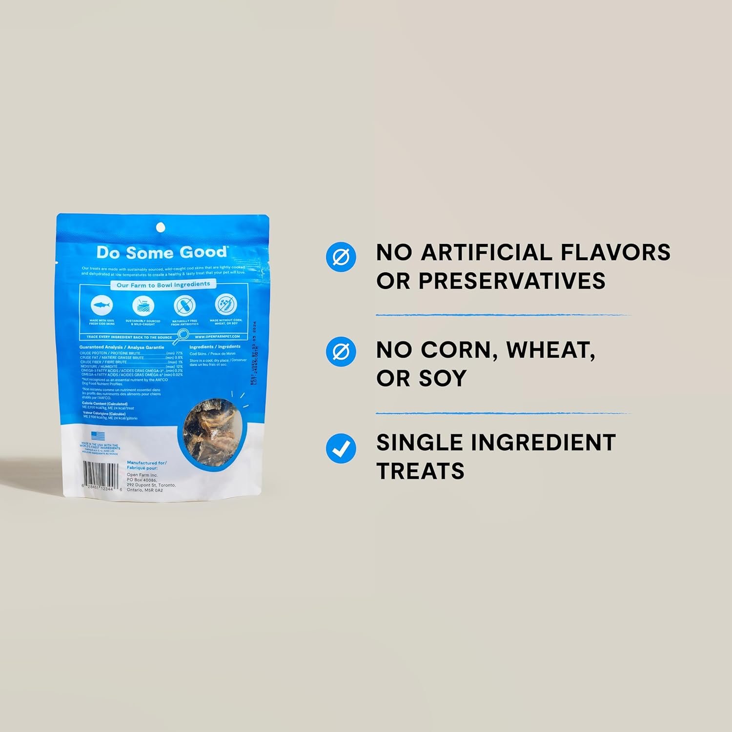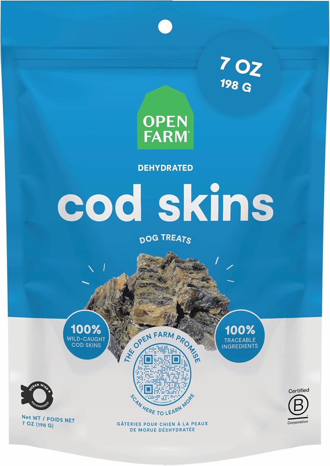Open Farm, Bulk-Size Dehydrated Dog Treats, High Protein & Low Carbohydrate Cod Skins, Crunchy Texture, Single Ingredient Wild-Caught Cod Skins Recipe, 7oz Bag