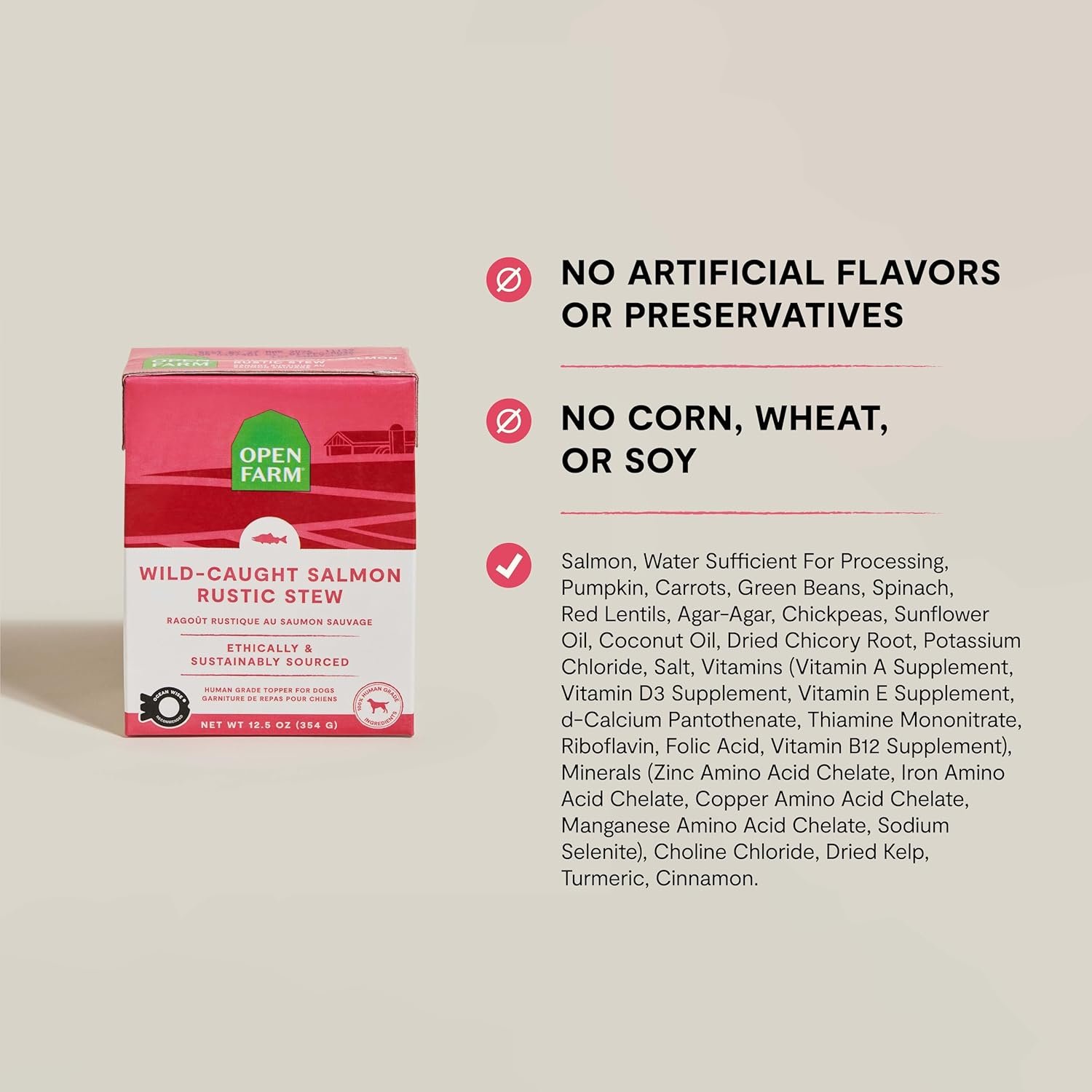 Open Farm Rustic Stews Wet Dog Food, Grain-Free, Complete & Balanced with Human-Grade Ingredients, Humanely-Raised Meat & Bone Broth, Wild-Caught Salmon Recipe, 12.5oz Packs (Case of 12)