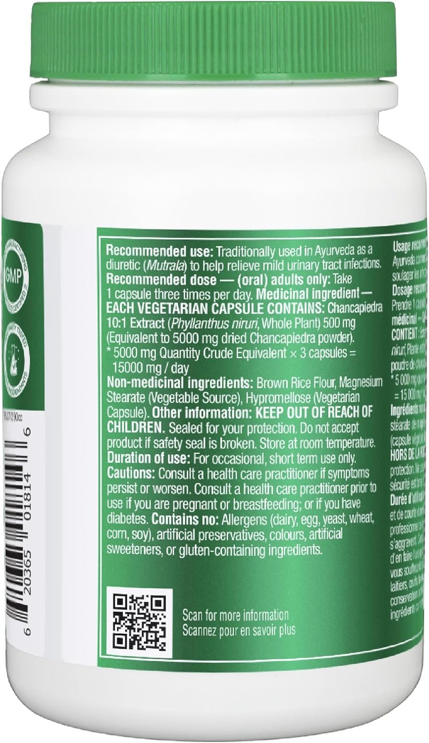 Organika Canadian-Made Chanca Piedra 500 mg – UTI Support | Kidney, Gallblader and Urinary Support, Cleansing- 120 vcaps