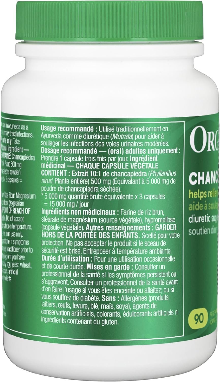 Organika Canadian-Made Chanca Piedra 500 mg – UTI Support | Kidney, Gallblader and Urinary Support, Cleansing- 90 vcaps