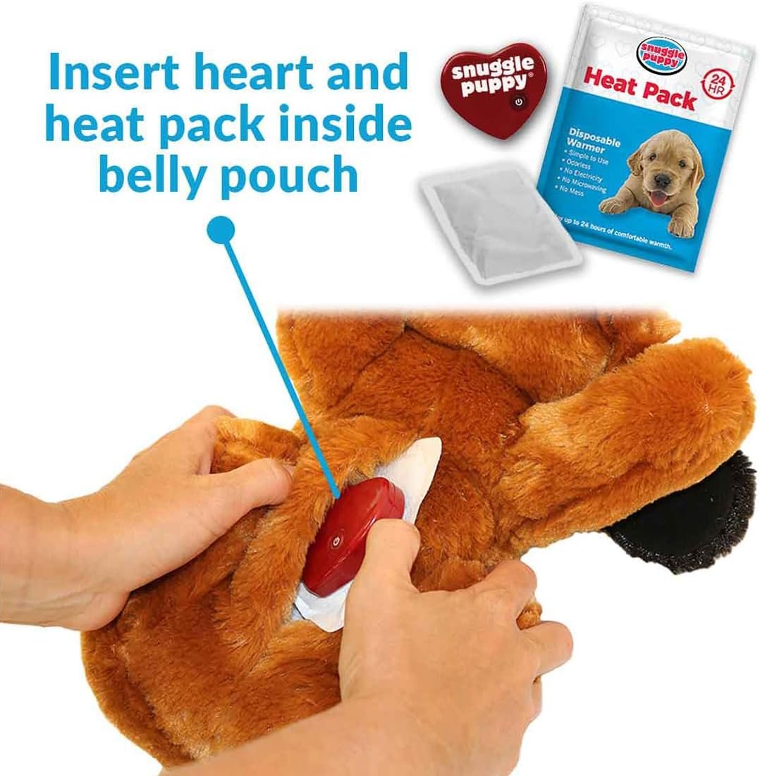 SAFE, HYPOALLERGENIC MATERIALS & MACHINE WASHABLE. Designed with your pet’s health in mind, Snuggle Puppy toys undergo thorough testing to meet high safety standards. The removable heat pack and Real-Feel Heartbeat make cleaning easy—just remove and toss the toy in the washing machine.