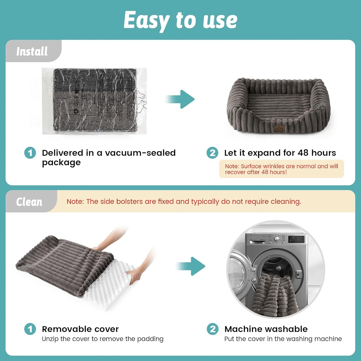 Perfect Fit for All Pets: 3 sizes (S – L) with detailed dimensions. Before purchasing, please choose the right Bed for your pet according to its size and weight. Vacuum-packed delivery – just unzip and let fluff for 48 hours!