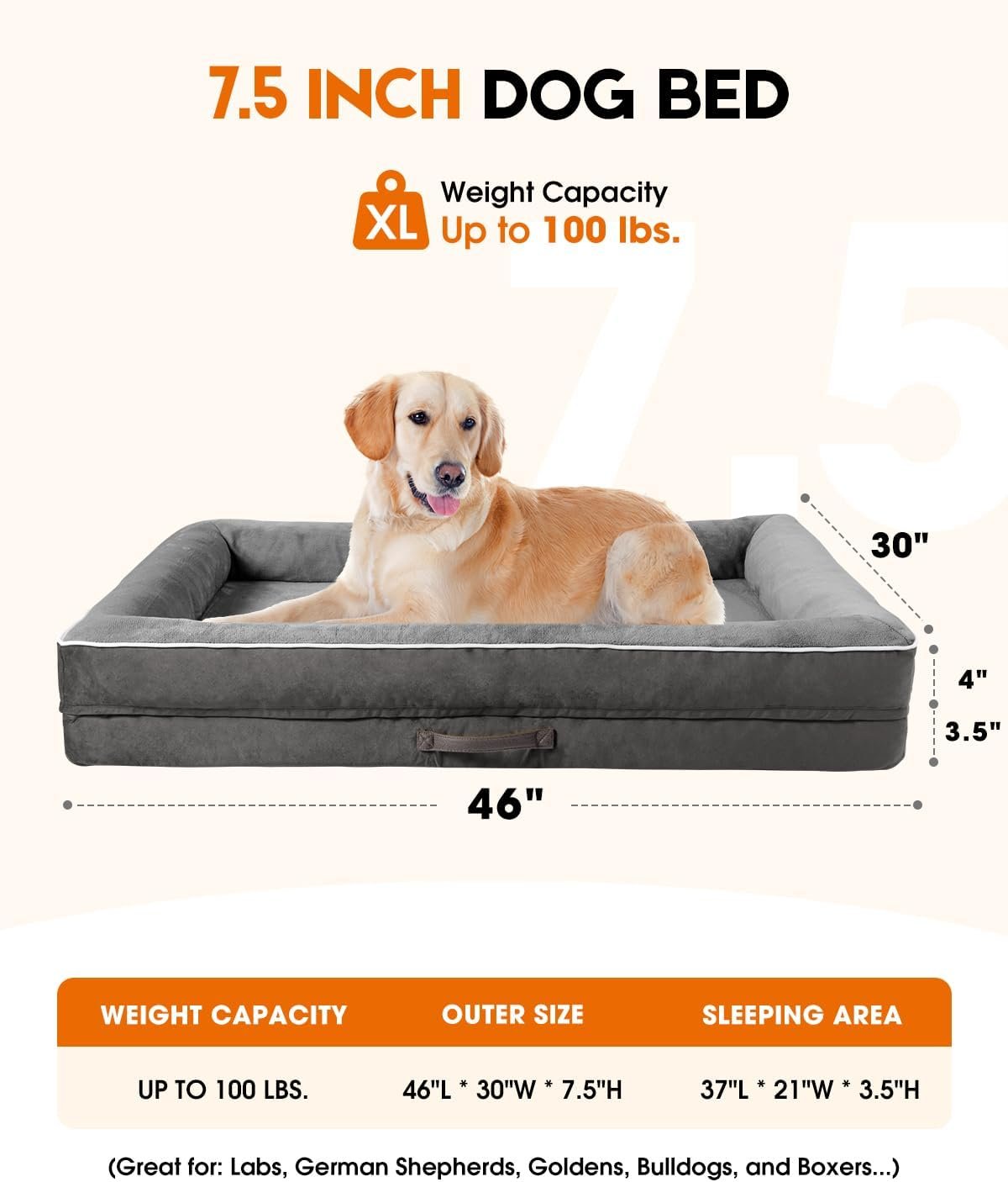 Orthopedic Dog Bed XL, Egg Foam Dog Couch with Removable Washable Cover, Waterproof Pet Sofa Bed with Non-Slip Bottom and Four-Sided Bolster Cushion, Extra Large Dog Bed Gray for Big Dog
