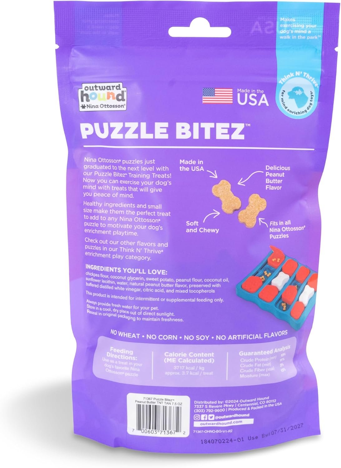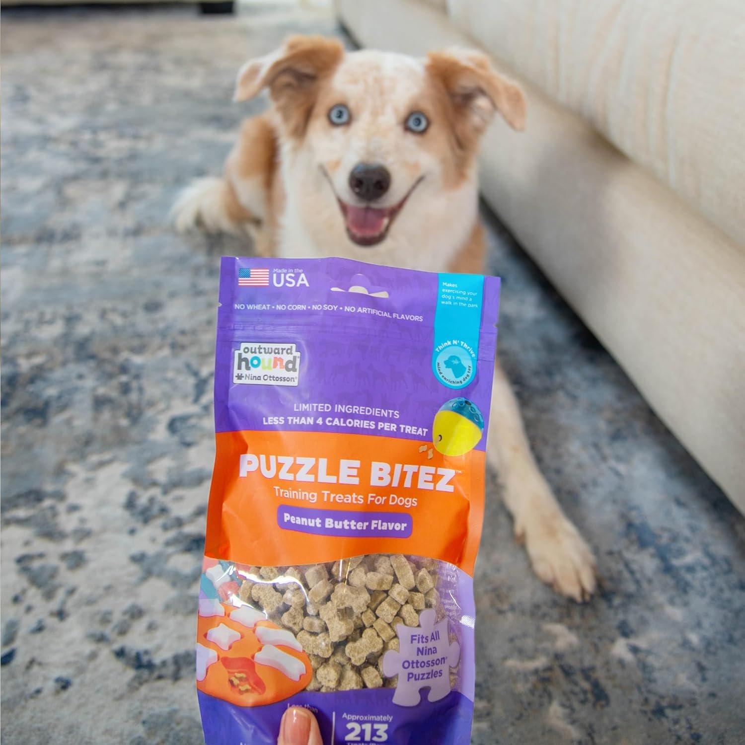 Outward Hound by Nina Ottosson Puzzle Bitez USA Made Dog Treats, Peanut Butter Flavor, Bite-Sized Training Reward and Interactive Puzzle Toy Treats, 7.5oz