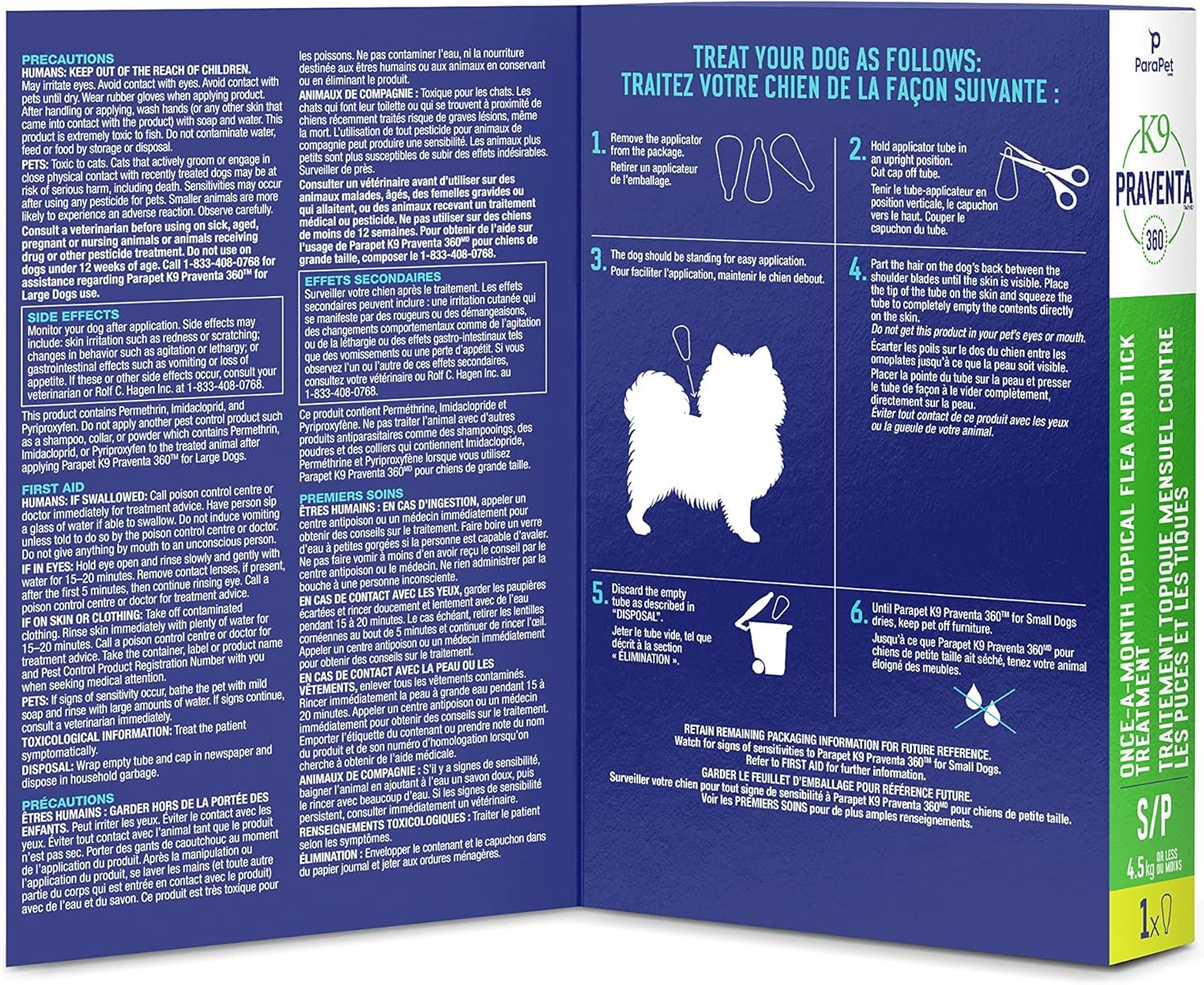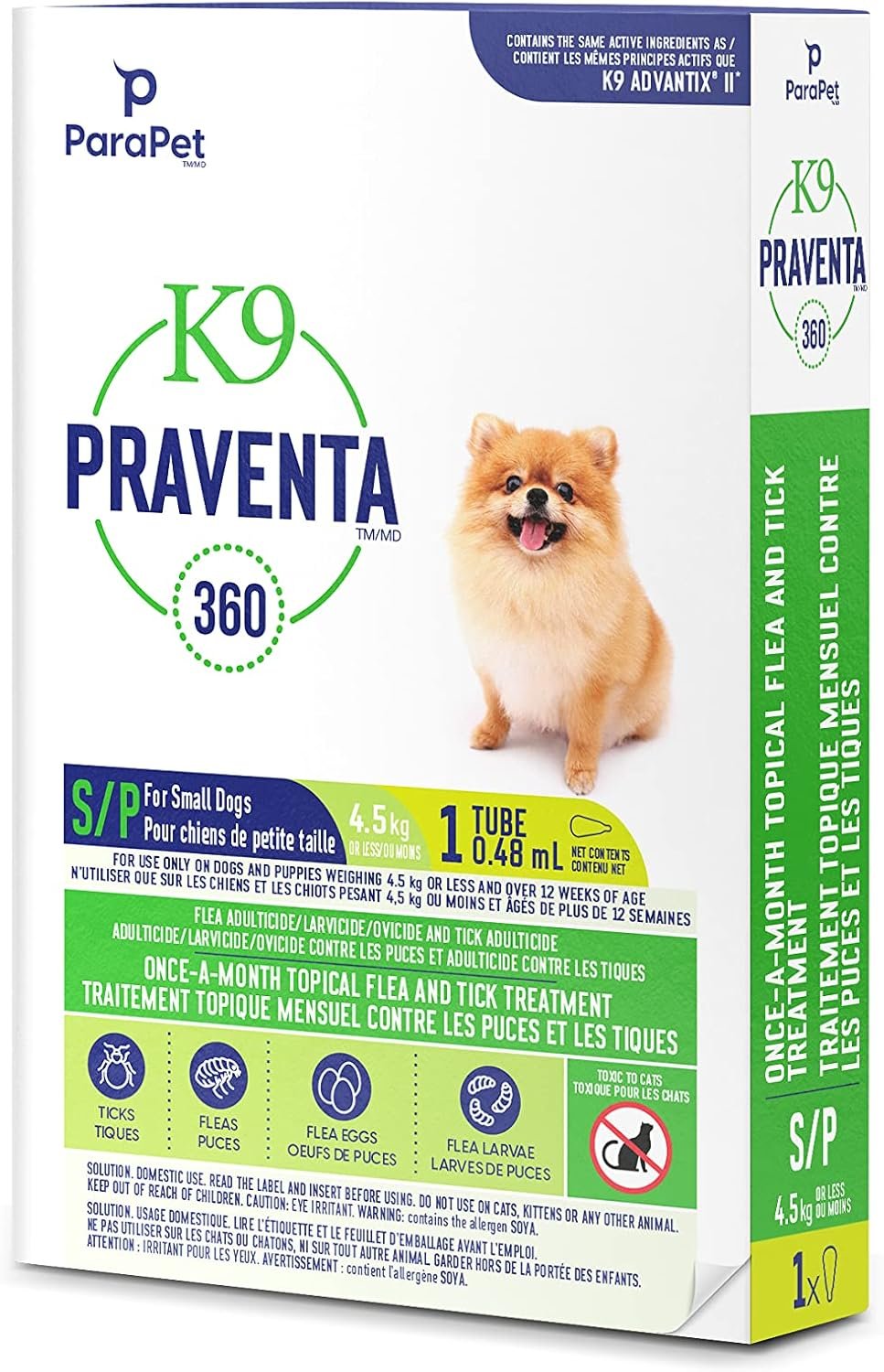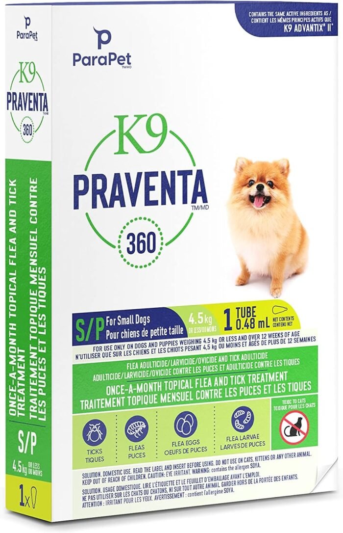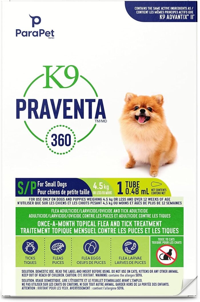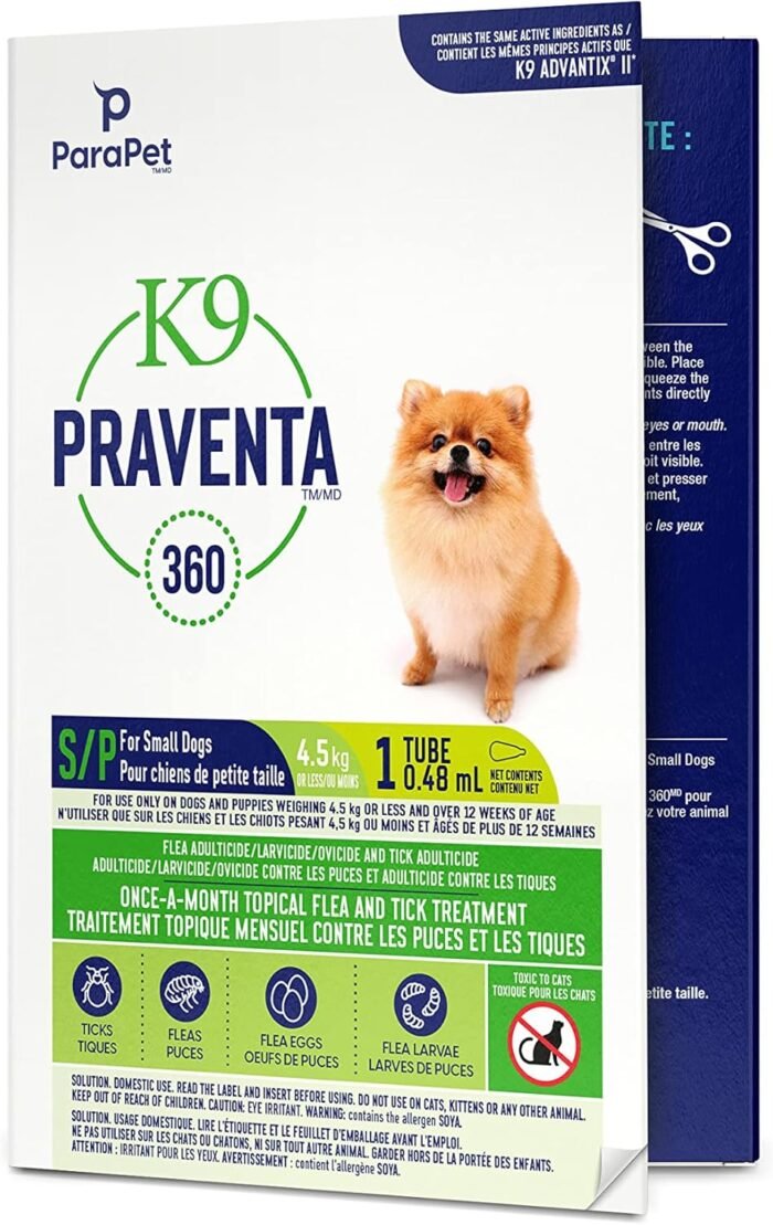 For use only on dogs and puppies weighing 4.5 kg or less and over 12 weeks of age – Contains 1 tube (0.48 ml). DO NOT USE ON CATS