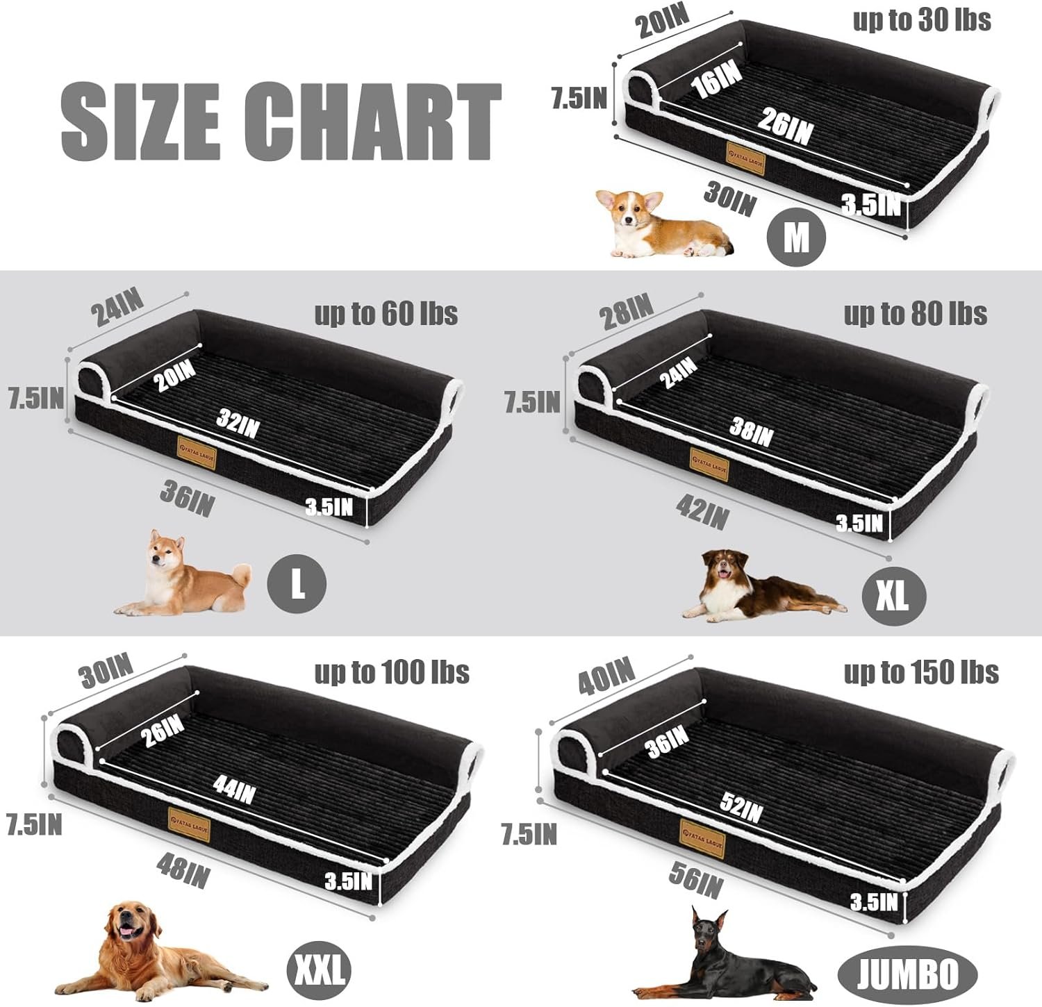 Multiple Choices: There are five colors available, and for each color, there are 5 standard sizes in the range of 76×51 /91×61 /107×71 /122×76 /142×102 cm to select from. M:76x51cm one up to 35lbs, L:91x61cm one up to 65 lbs, XL:107x71cm one up to 90 lbs, XXL:122x76cm one up to 110 lbs, Jumbo:142×102 cm one up to 160 lbs