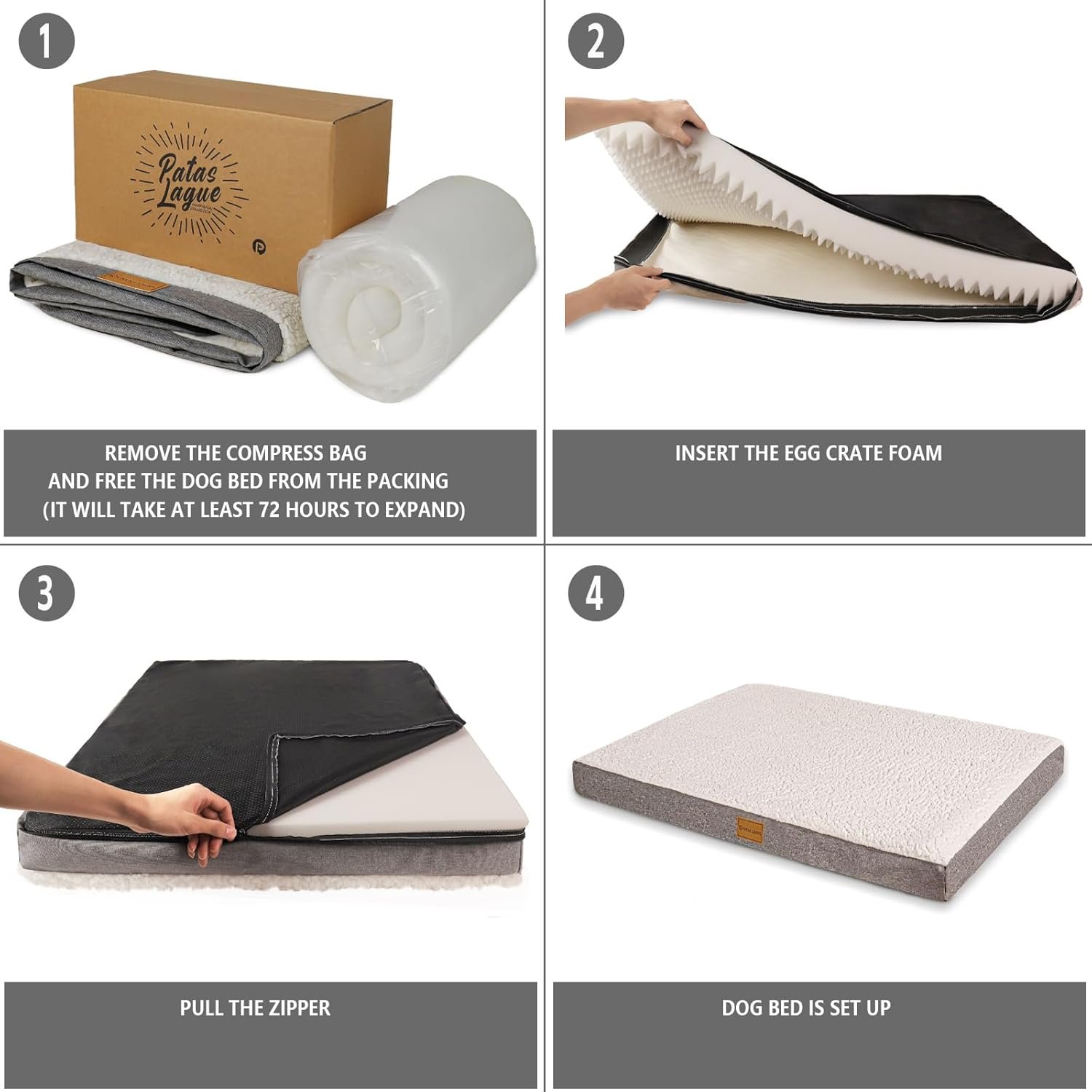 Care Instructions: The removable cover of the dog bed is machine washable; simply machine wash and tumble dry; please note that the egg crate foam is not washable; as the foam is compressed it will take about seventy-two hours to expand
