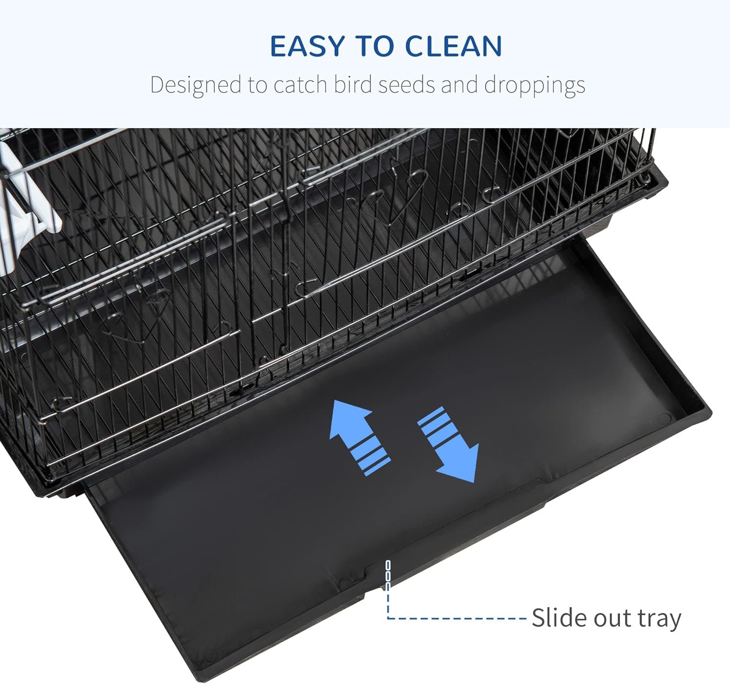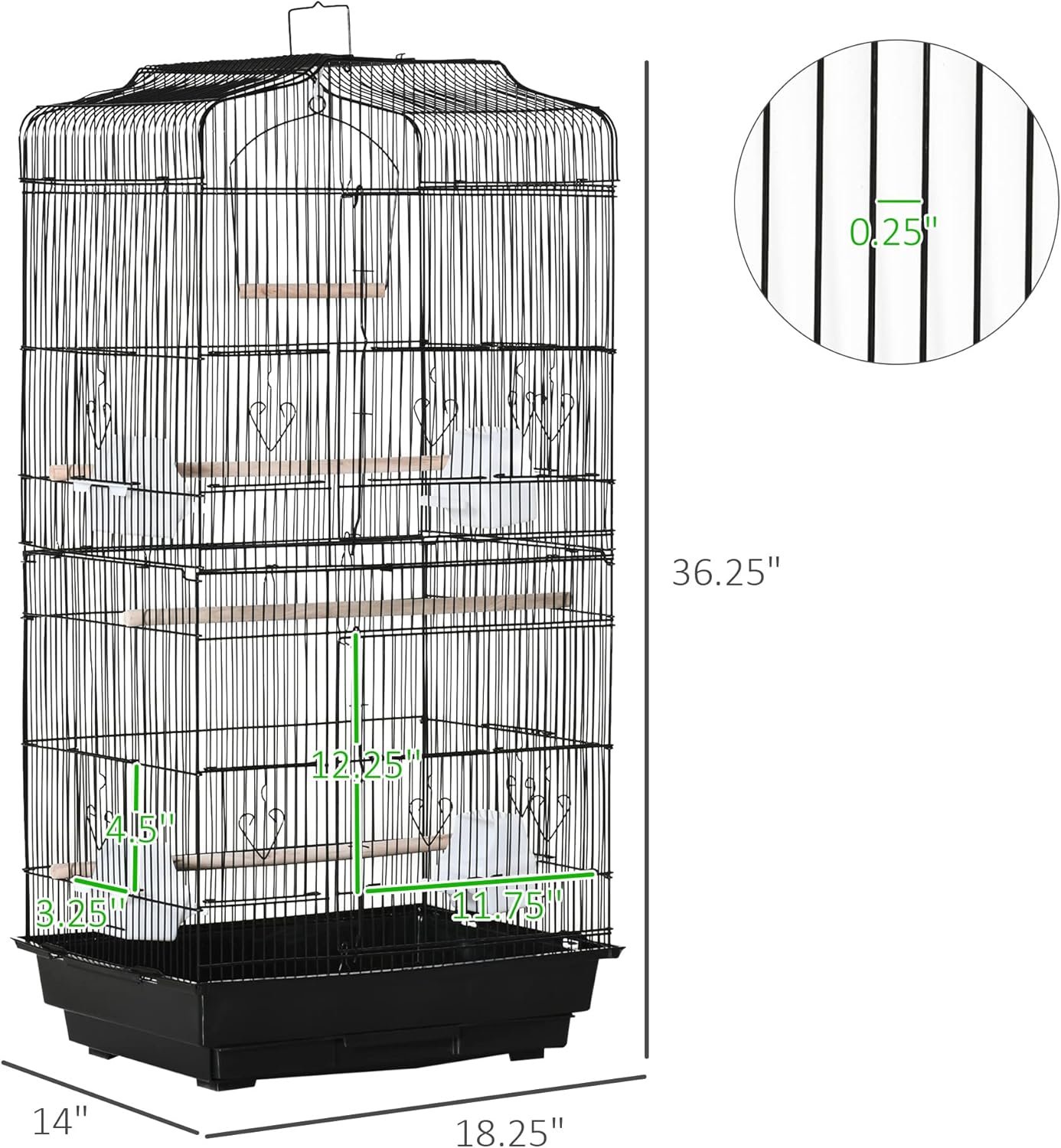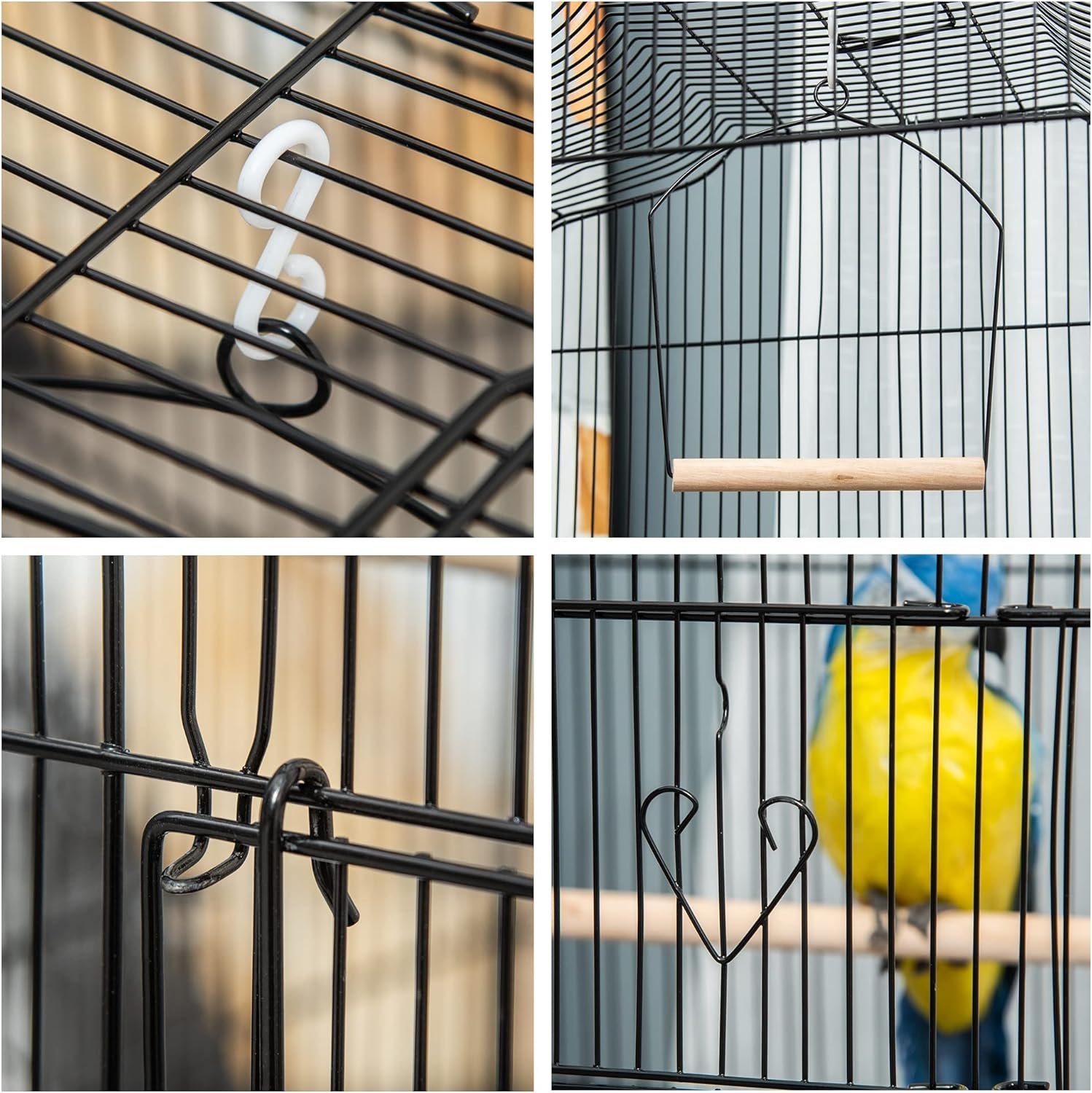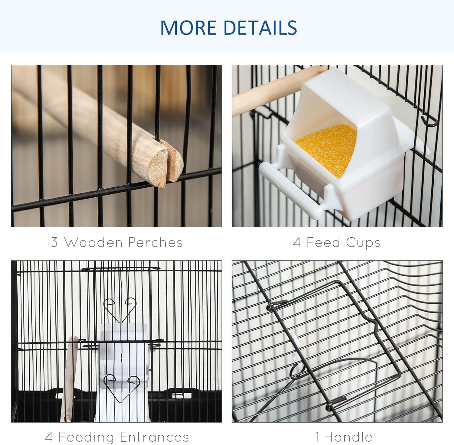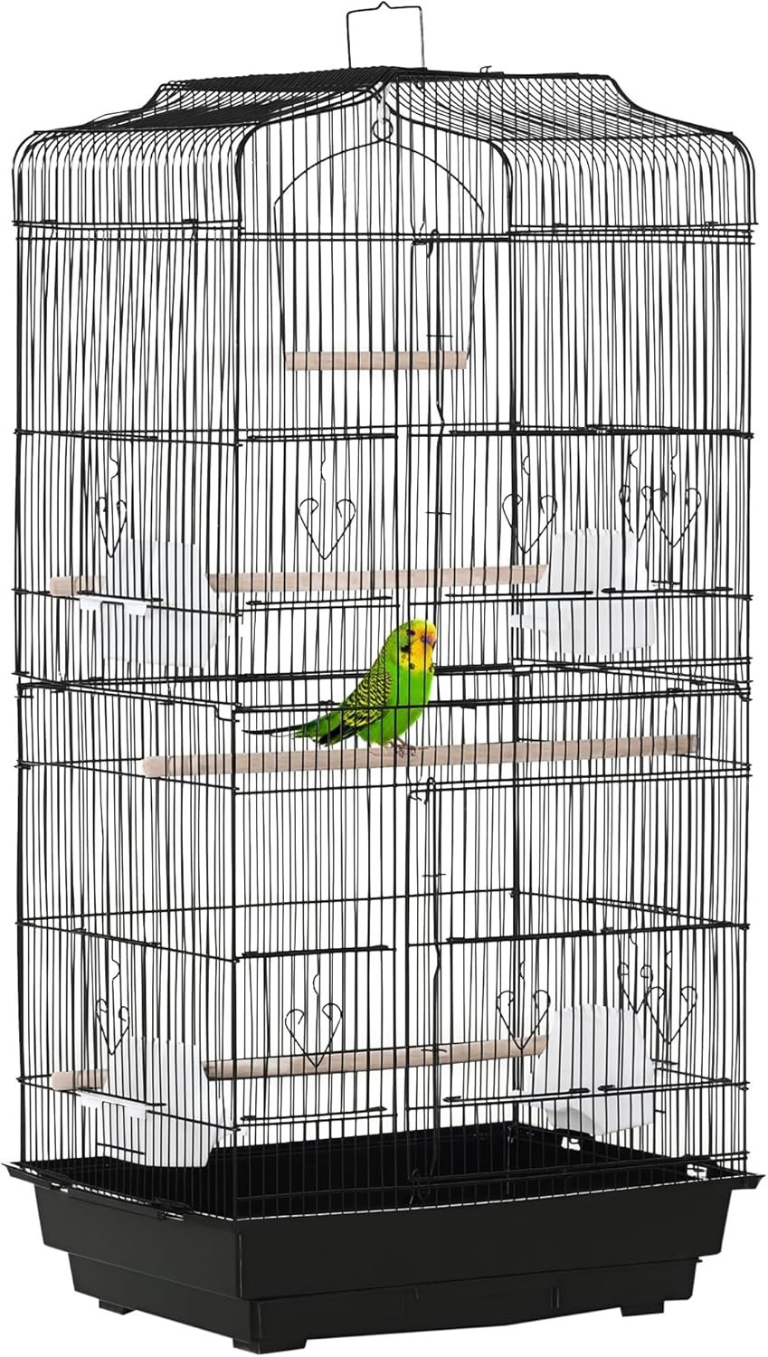 PawHut 36″ Bird Cage for Finches Canaries Budgies, Parrot Cage with Accessories Handle, Black