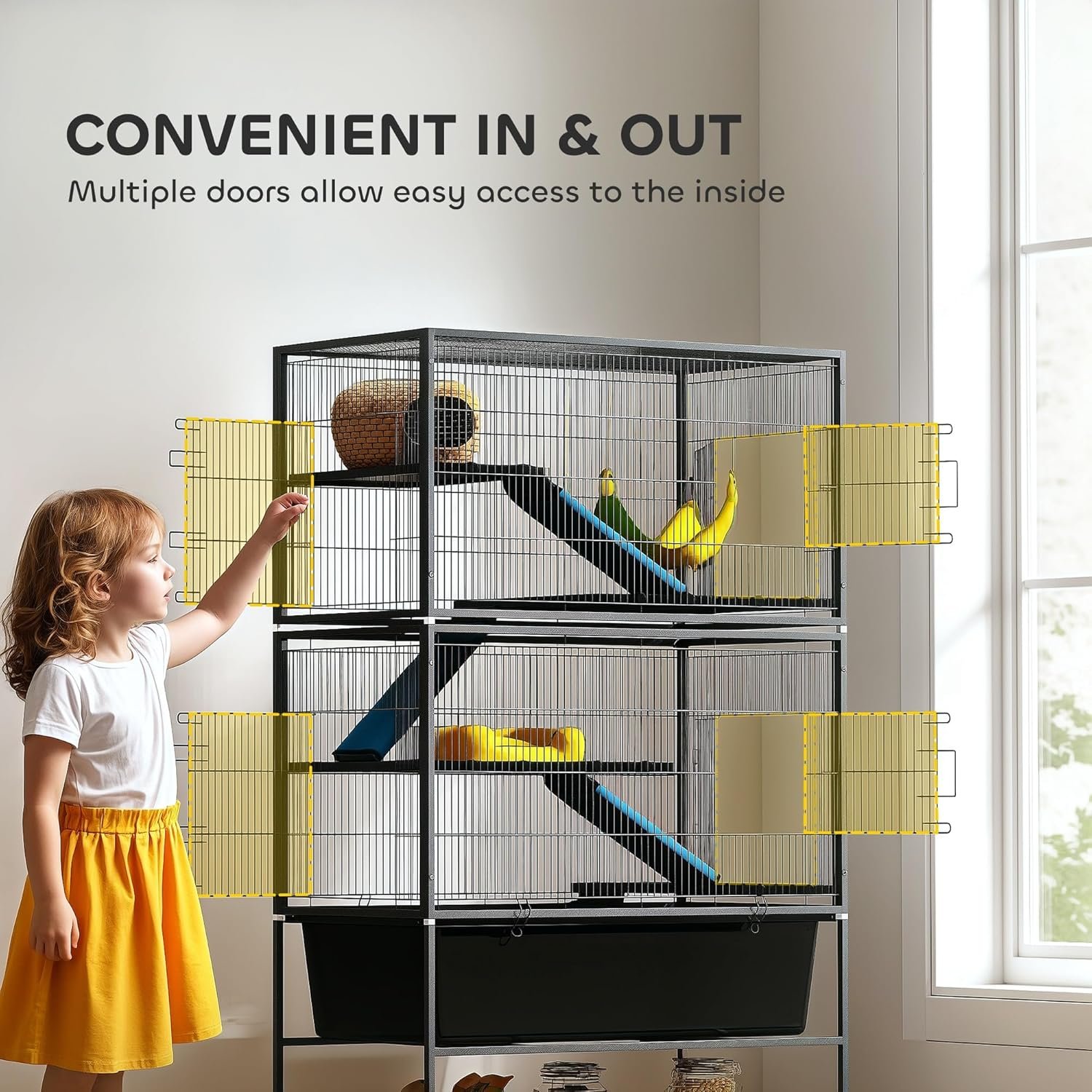 Safety Meets Durability: This cat cage has a robust steel construction with escape-proof bar spacing, ensuring your curious critters stay safely inside. Designed to keep pets secure and owners peace of mind