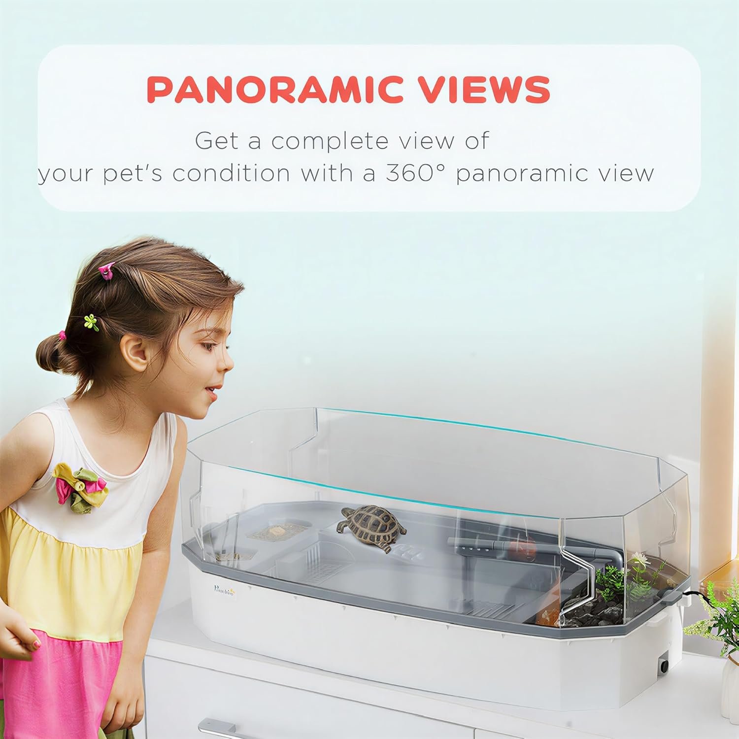 PawHut Turtle Tank, Turtle Aquarium with Full View Reptile Habitat, Basking Platform, Multi-Functional Area, Filter Layer Design, Water Pump, Easy to Clean and Change Water