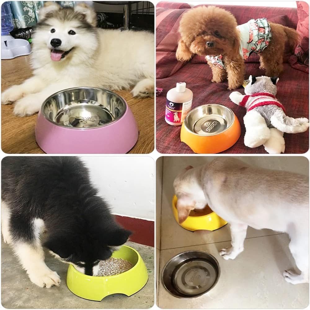 Classic round bowl, melamine base + stainless steel inner bowl, durable. Healthy feeding.