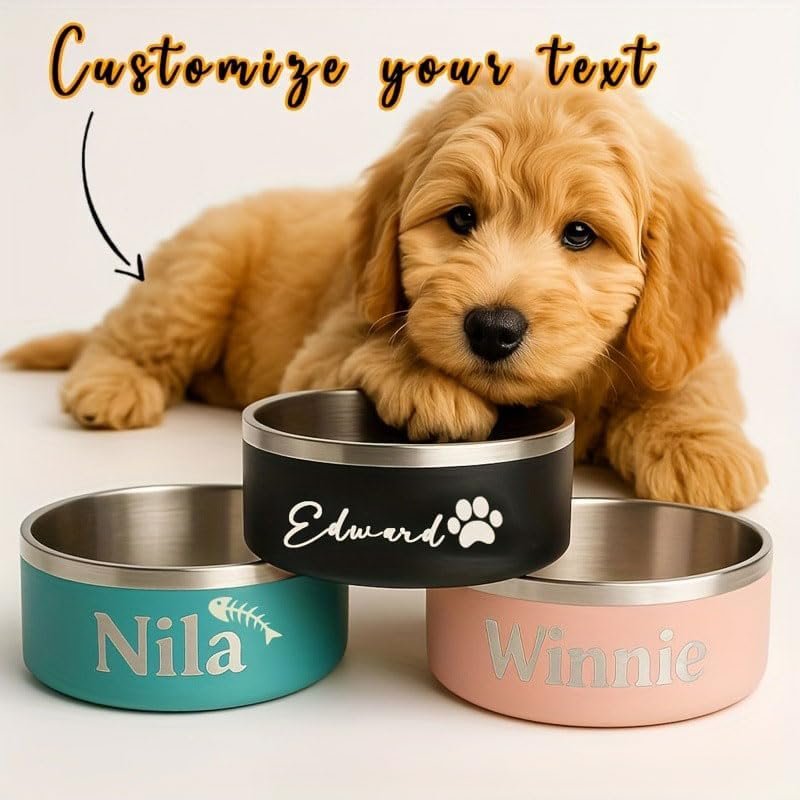 Personalized Dog Bowl, Custom Pet Name Stainless Steel Pet Bowl Puppy Dog Feeding Bowl for Food and Water Insulated Bite-Resistant Food Water Dishes (Style 3)