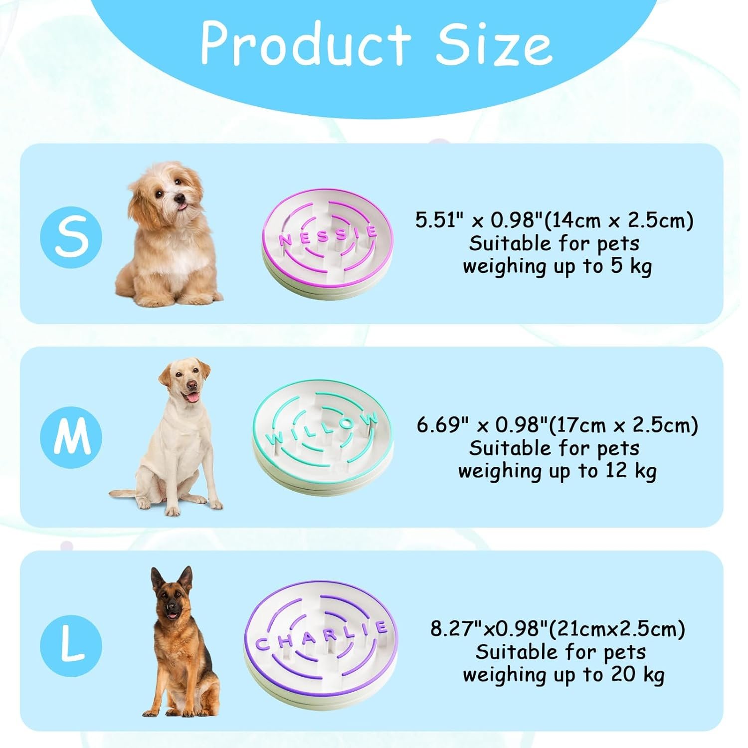 Variety of Sizes: Offering 3 different sizes, our slow feeder dog bowls cater to pets of all breeds. S -5.12″x 0.98″(13cm x 2.5cm), M-5.91″x0.98″(15cm x 2.5cm), L-7.09″x0.98″(18cm x 2.5cm), Whether you have a small Chihuahua or a large Great Dane, we have the right bowl to ensure your furry friend eats comfortably and at the right pace.