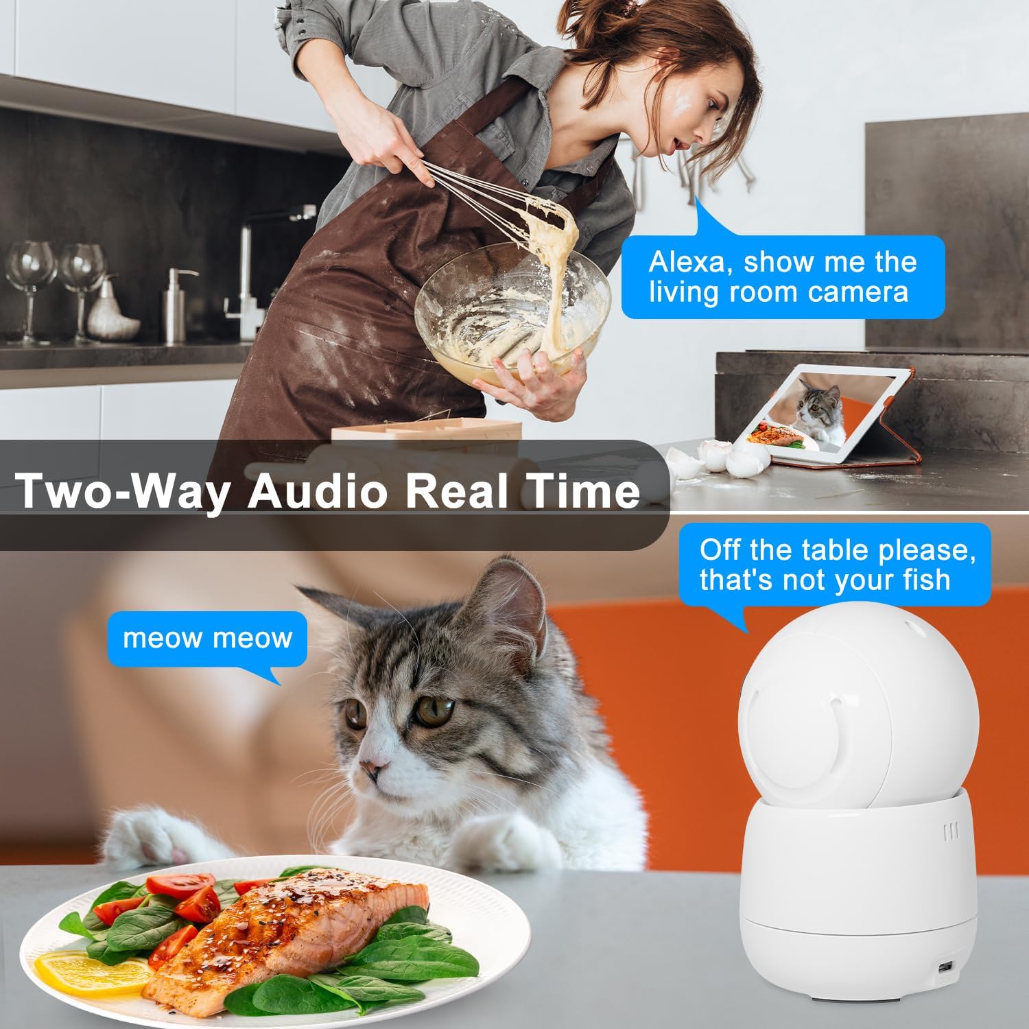 Pet Camera, Night Vision Enhancement 2K Indoor Security Camera with Phone App, 2.4GHz Wireless WiFi Dog Cat Cam, 360° Motion Tracking, 2-Way Audio, Works with Alexa