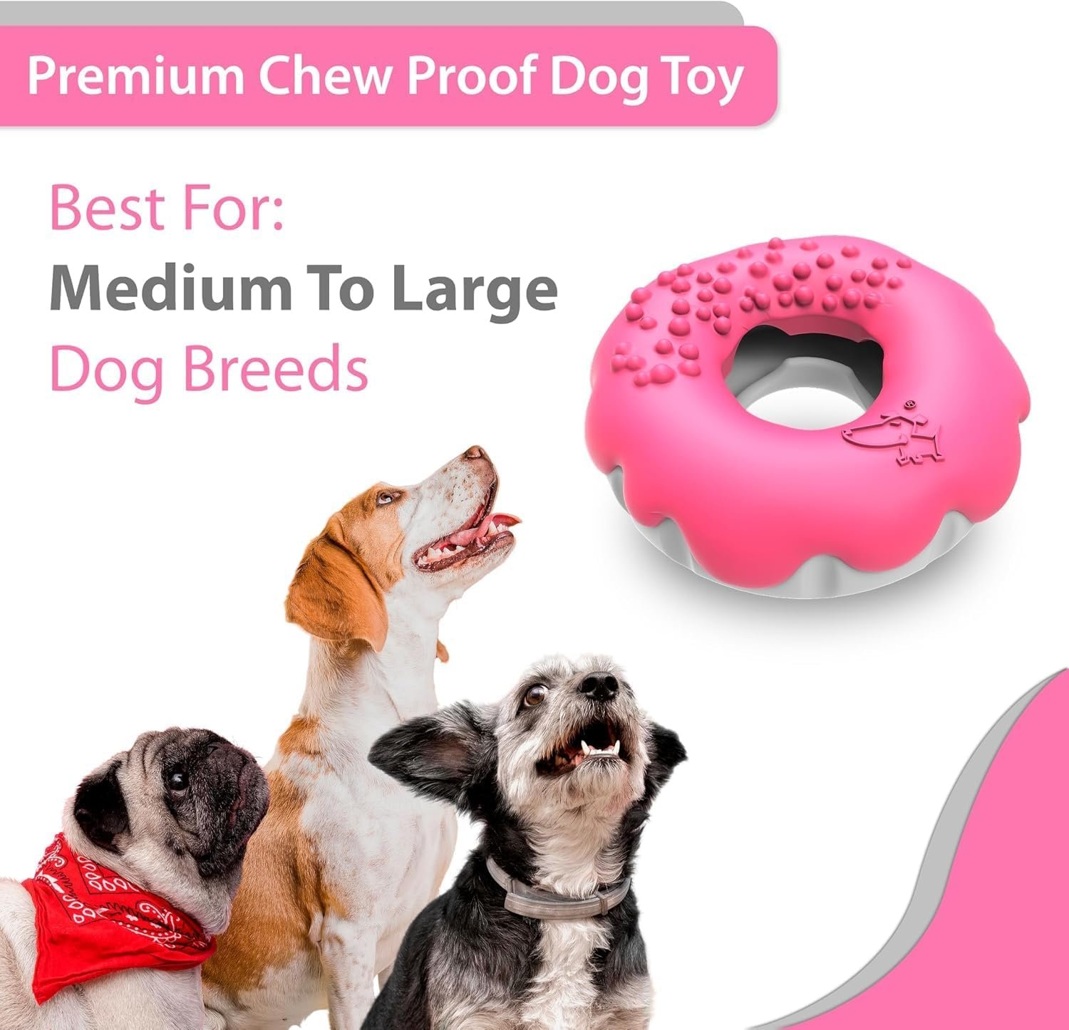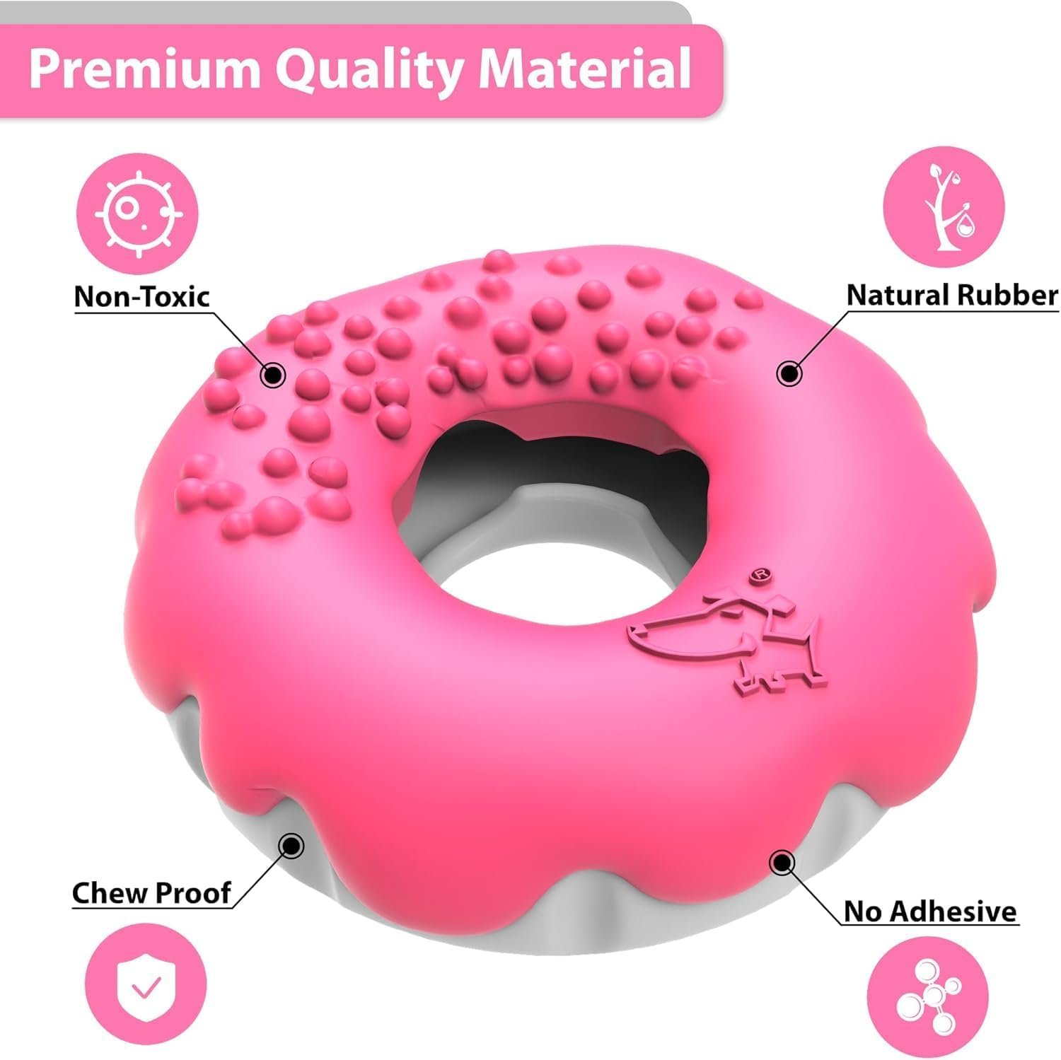 Pet Frenly Dog Toys Aggressive Chewers – Puppy Chew Toys – Interactive Dog Toys for Large Dogs 2 in 1 Treat and Tough Rubber Dog Chew Toy for Boredom – Large Dog Toys Doughnut Shape (Shocking Pink)
