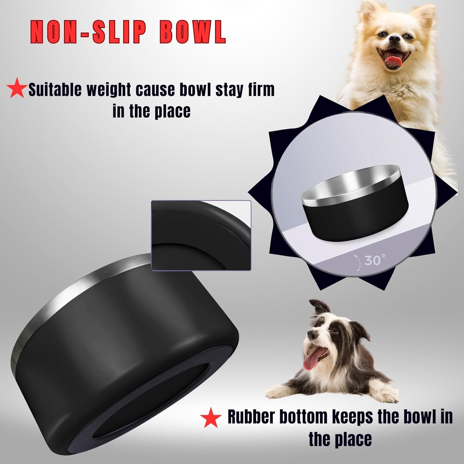 [Stable and Non-Slip] Our stainless steel dog bowl features a double-layer design that adds the right weight to keep it steady, along with a non-slip rubber ring on the base to prevent sliding while your dog eats or drinks.